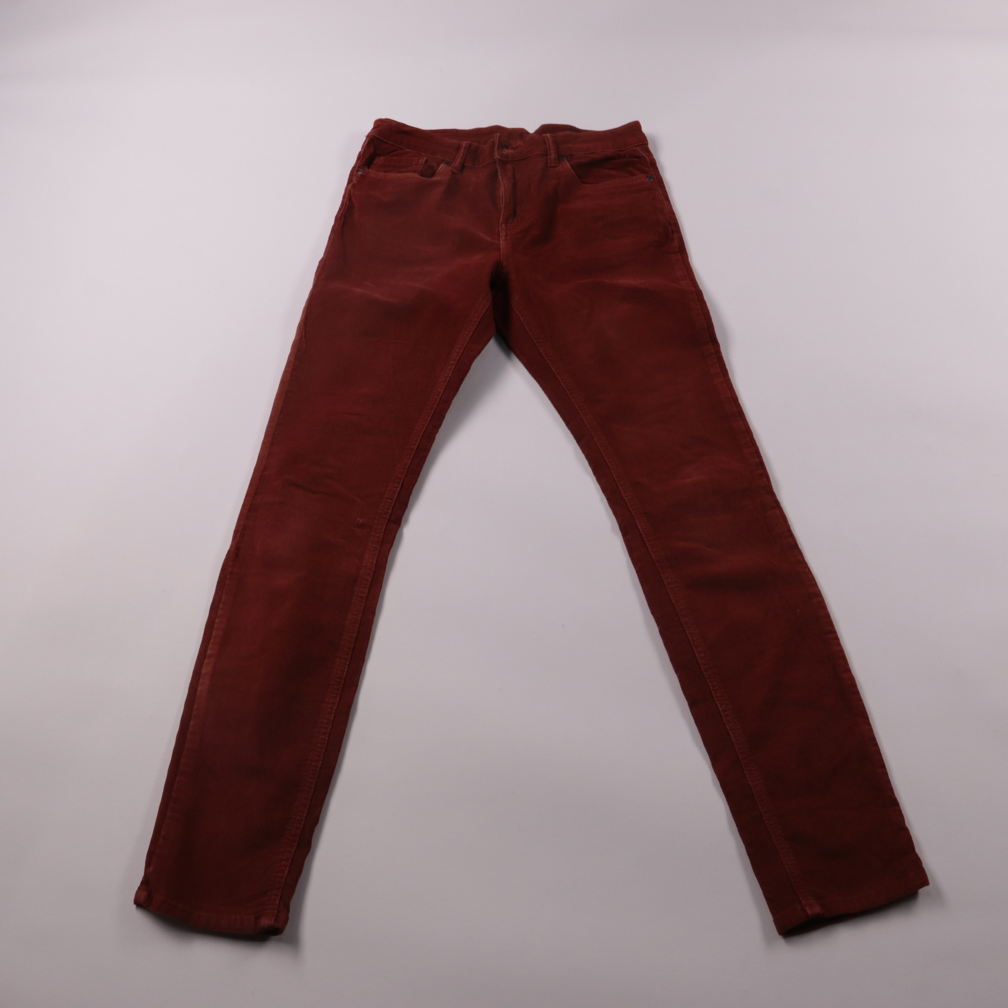 Женские вельветовые брюки Hema бордового цвета, прямого кроя с карманами. Подойдут для повседневных образов в демисезон с рубашкой, свитером или жакетом. Плотный вельвет хорошо держит форму и комфортен в носке.