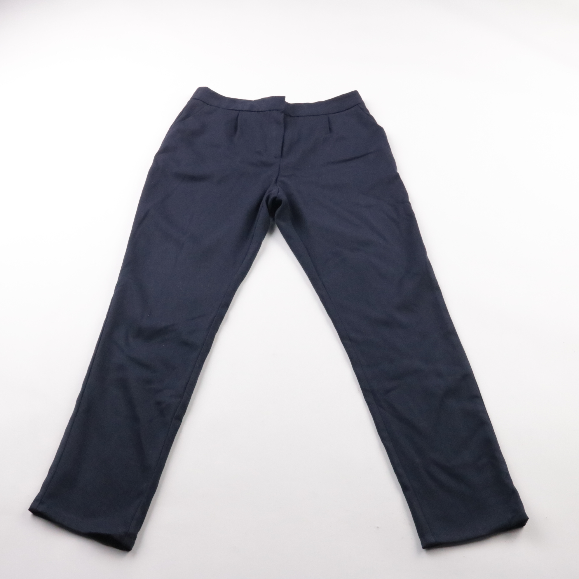 Женские брюки F&F тёмно-синего цвета, прямого кроя с аккуратными стрелками и посадкой на талии. Подойдут для офиса и повседневных образов с рубашкой или свитером. Практичный плотный материал почти не мнётся и хорошо держит форму.