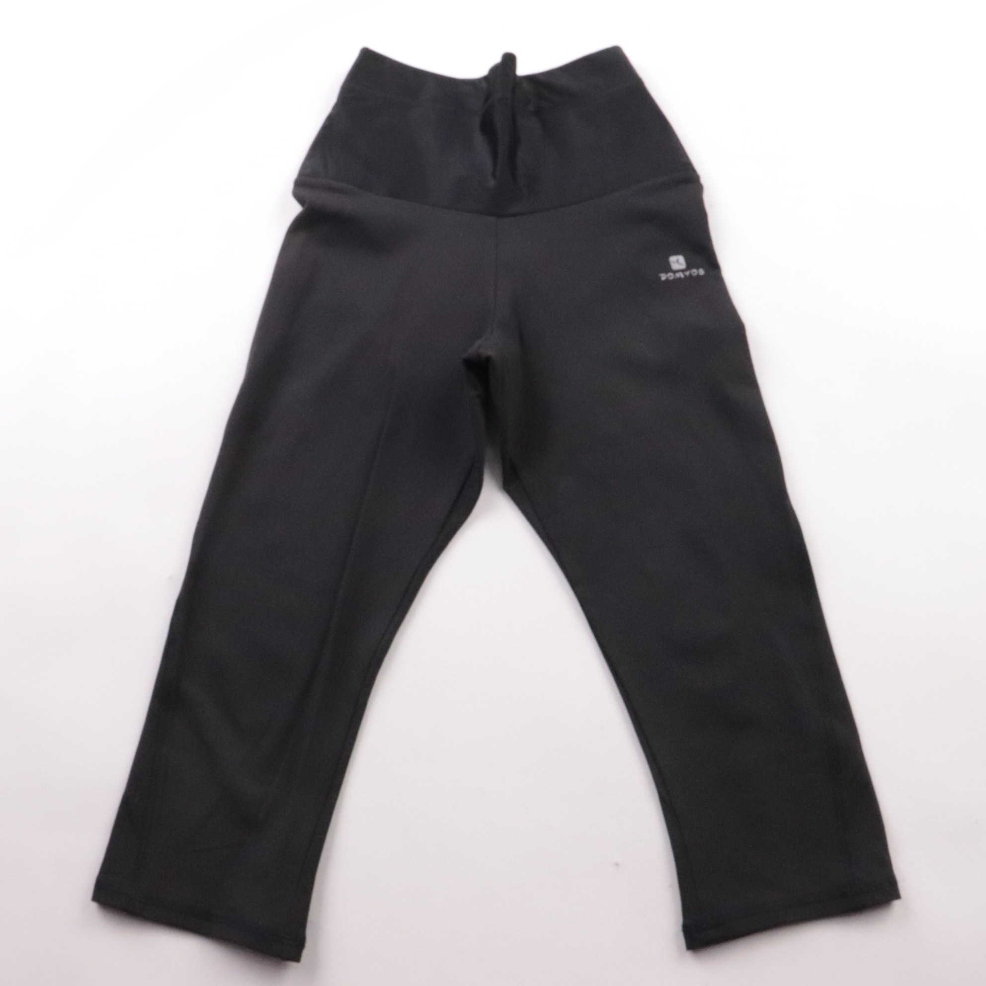 Женские спортивные брюки Decathlon в чёрном цвете с высокой посадкой и шнурком на талии. Подойдут для тренировок, прогулок и повседневной носки, материал хорошо тянется и не сковывает движения. Практичный плюс — комфортная посадка и простота в уходе.