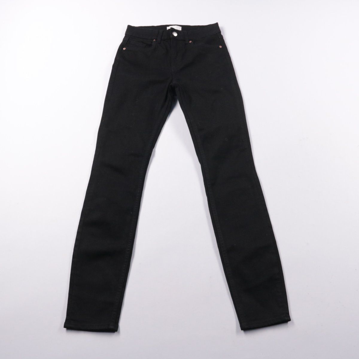 Чёрные зауженные брюки H&M из плотной ткани с небольшим стрейчем и классической посадкой на молнии и пуговице. Подойдут для повседневных и более строгих образов, легко сочетаются с рубашками и свитерами. Практичный плюс — материал тянется и сохраняет форму при носке.