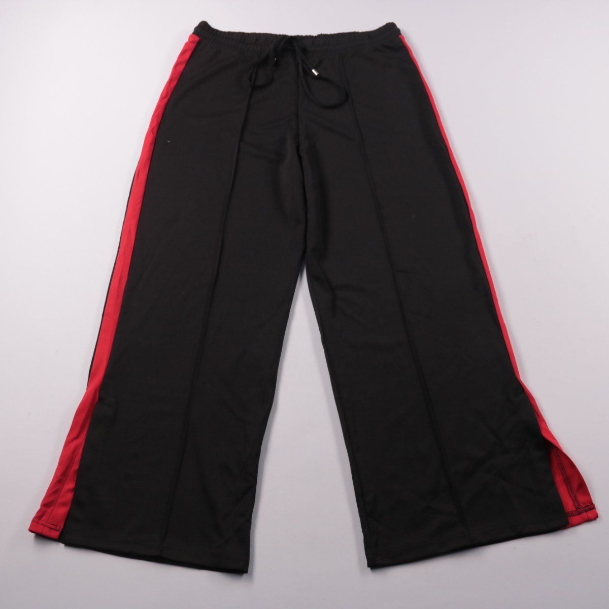 Брюки Brave Soul чёрного цвета с красными лампасами по бокам и эластичным поясом на кулиске. Подойдут для повседневных образов и отдыха, крой слегка расклешённый к низу. Материал тянется и не сковывает движения.