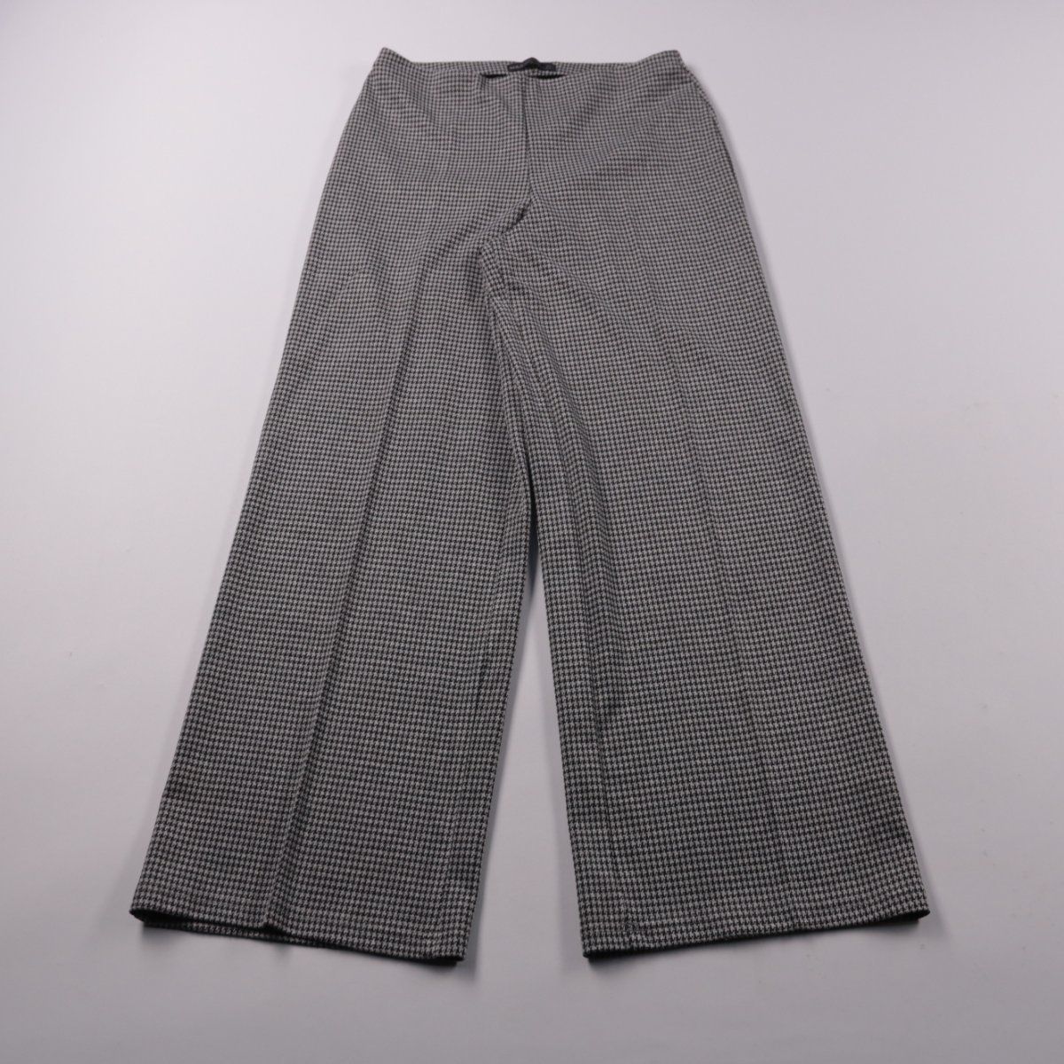 Брюки M&S прямого кроя из ткани с мелким узором «гусиная лапка» в чёрно-белом миксе. Подойдут для офиса и повседневных образов в демисезон, хорошо сочетаются с базовыми рубашками и свитерами. Смесовый материал со спандексом чуть тянется и комфортно сидит.