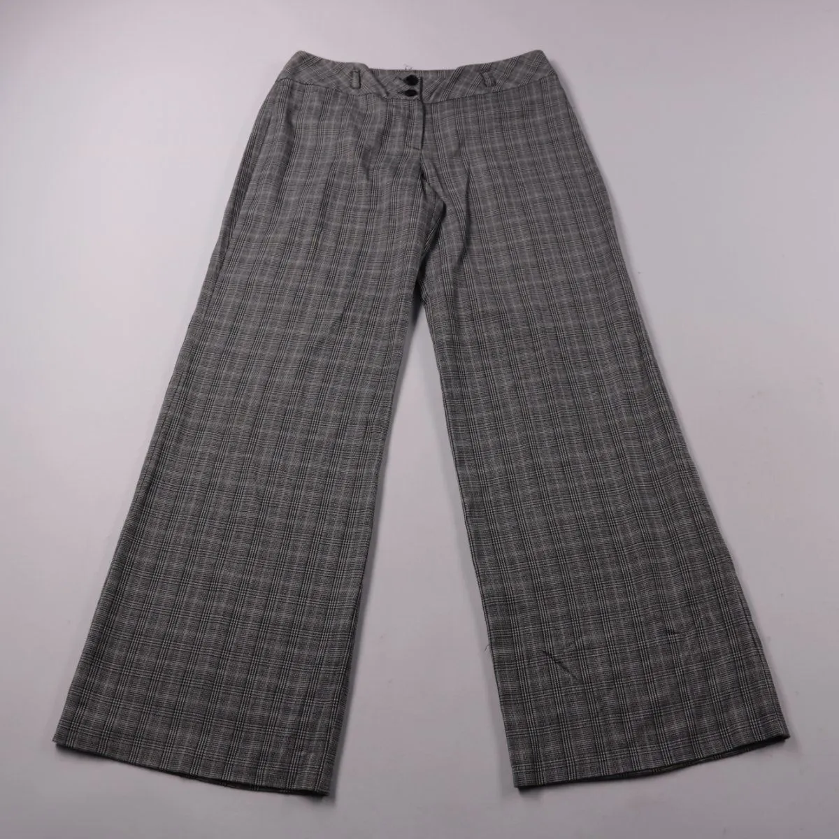 Брюки Dorothy Perkins серого цвета в клетку, прямого кроя с застёжкой на пуговицах. Подойдут для офиса и повседневных образов с рубашкой или джемпером. Практичный плюс — нейтральный принт легко сочетать с базовой обувью и верхом.