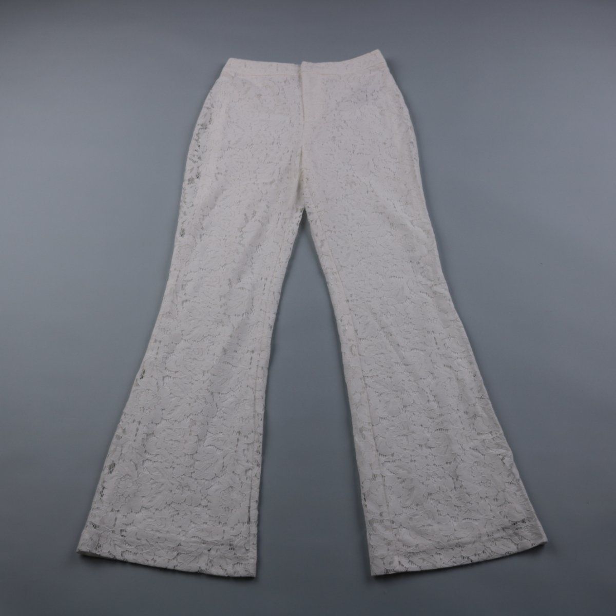 Женские белые брюки Gina Tricot из кружевного материала с подкладкой и расклешёнными штанинами. Подойдут для летних образов, отпуска и выходов, когда хочется добавить фактуры. Подкладка делает модель менее просвечивающей и комфортной в носке.