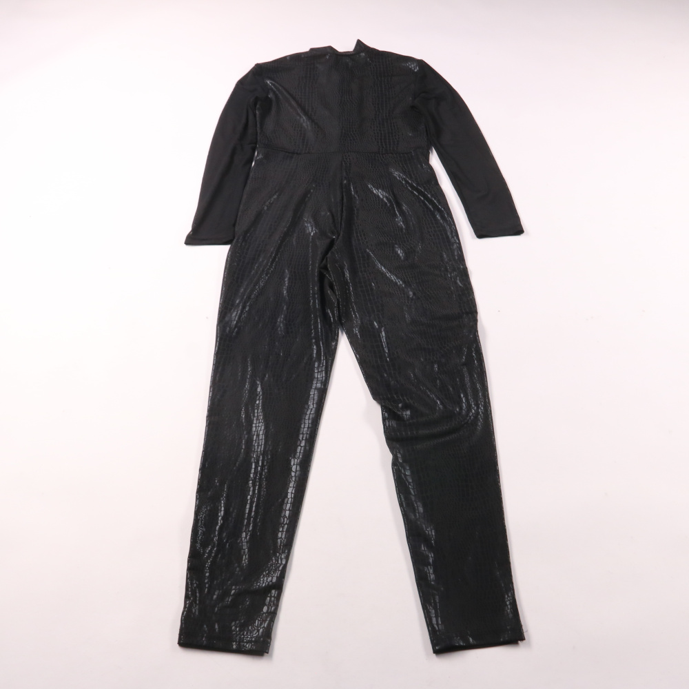 Женский комбинезон Shein из эластичного материала с блестящей фактурой под кожу рептилии, длинный рукав и облегающий крой. Подойдёт для вечернего образа, вечеринки или фотосессии, хорошо сочетается с обувью на каблуке. Ткань тянется и комфортно садится...
