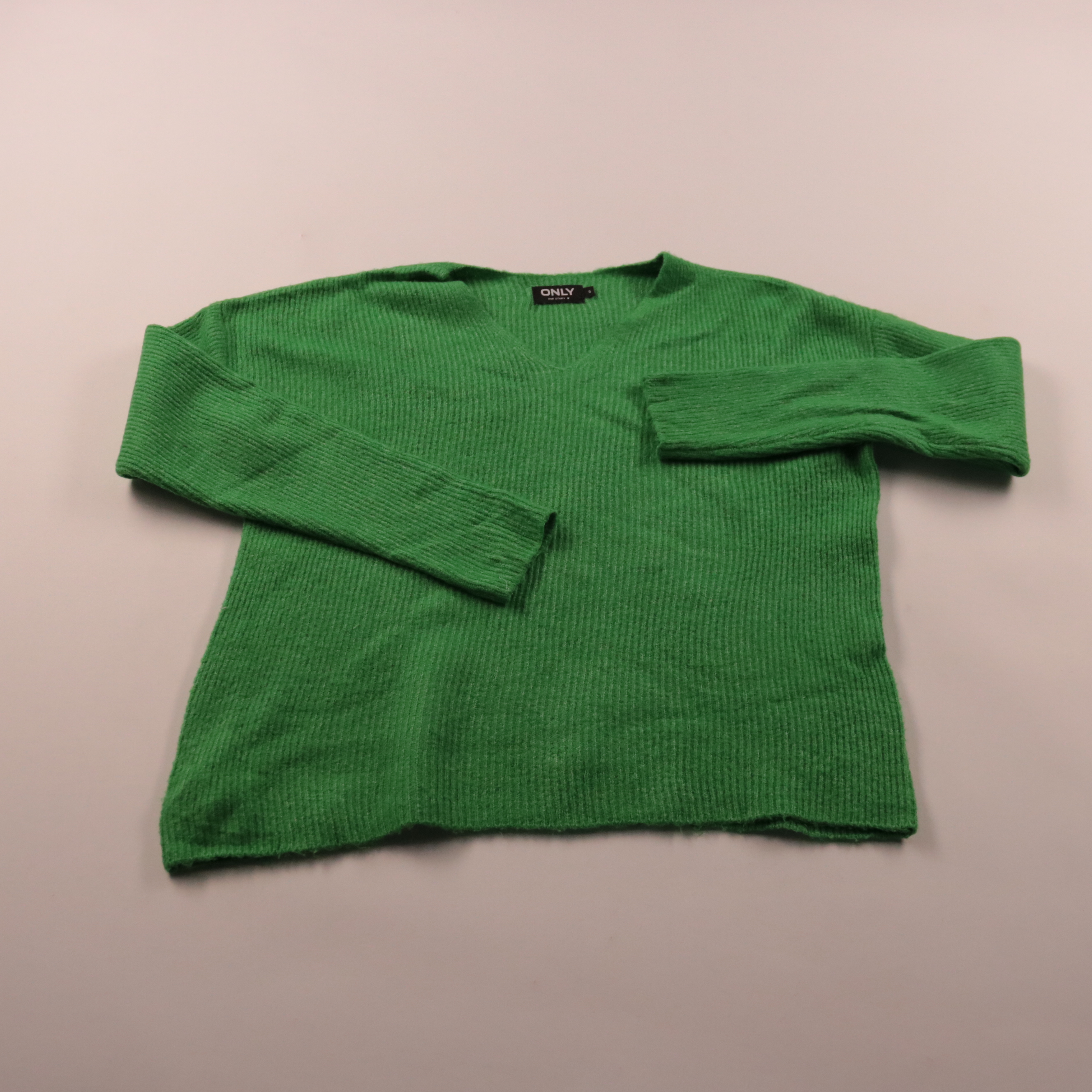 Зелёный джемпер Only в рубчик с V‑образным вырезом и длинным рукавом. Подойдёт для повседневных образов в демисезон и зимой как слой под жакет или пальто. Мягкий трикотаж хорошо тянется и комфортно сидит.