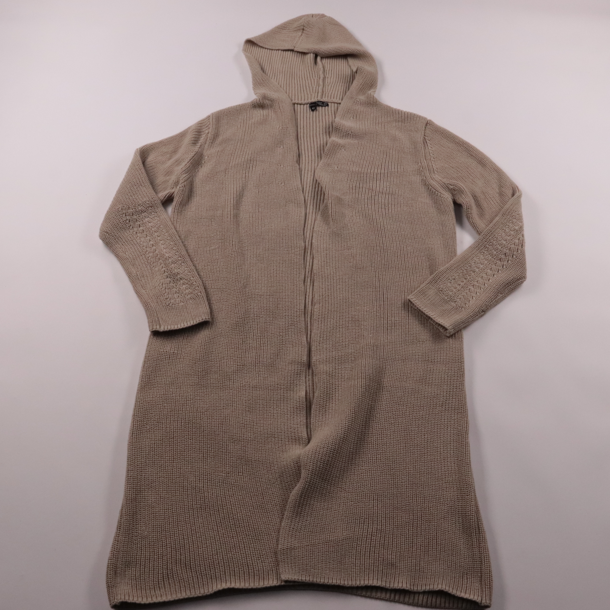 Вязаный кардиган Norah бежевого цвета с капюшоном и ажурной вязкой на рукавах. Подойдёт для демисезона и прохладных летних вечеров, хорошо смотрится с джинсами и платьями. Практичен тем, что лёгкий и не мнётся, можно носить как накиду.