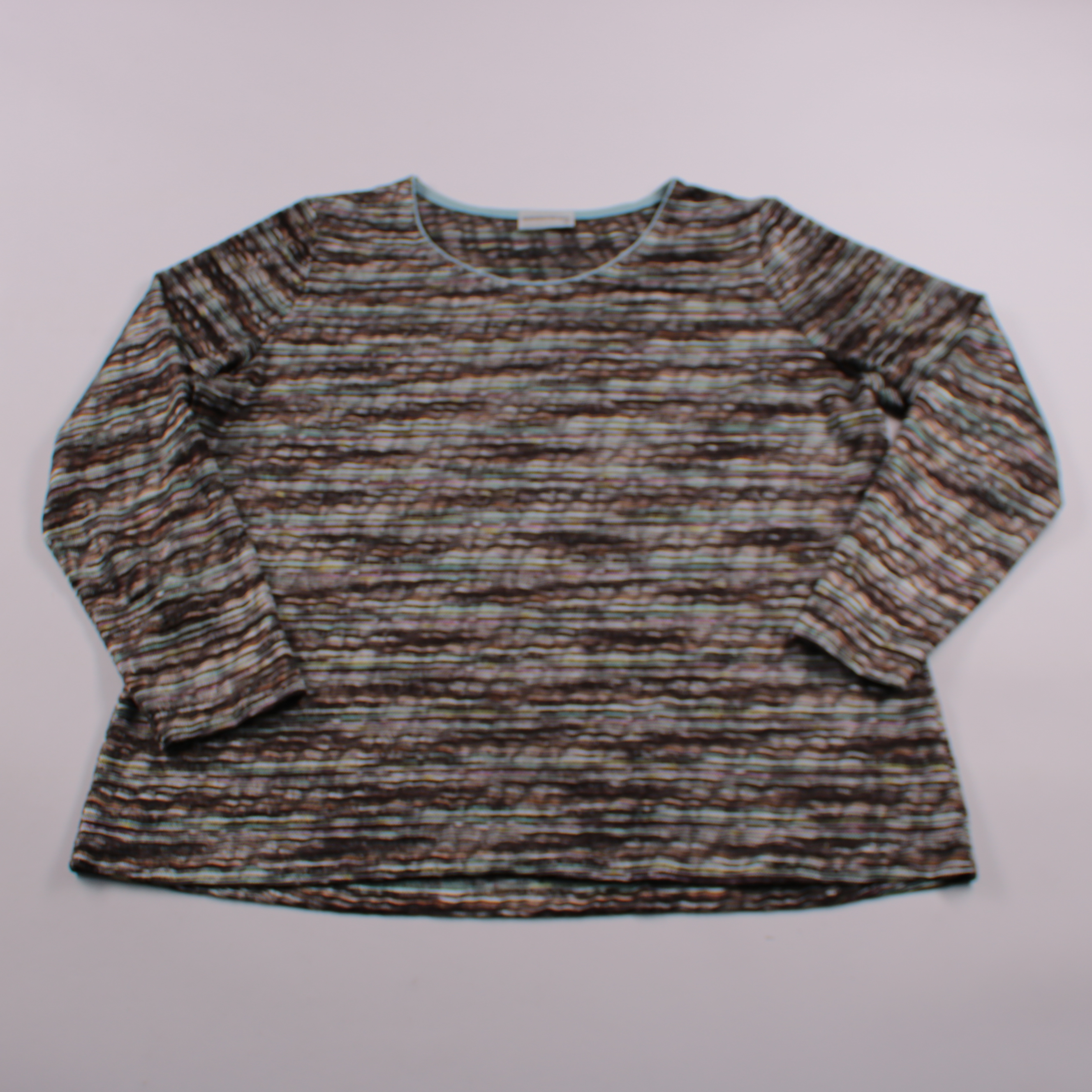 Кофта Sommermann с круглым вырезом и рукавом 3/4, выполнена из фактурного трикотажа в разноцветную полоску. Подойдёт для повседневных образов в демисезон, хорошо сочетается с джинсами и однотонными брюками. Ткань мягкая и комфортная, за счёт фактуры см...