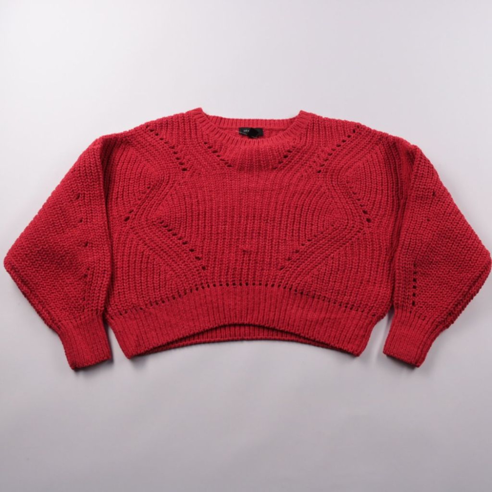 Укороченный вязаный джемпер New Look красного цвета с фактурным узором и круглым вырезом. Подойдёт для повседневных образов в прохладную погоду, хорошо сочетается с джинсами и юбками с высокой посадкой. Плотная вязка держит форму и добавляет тепло без ...