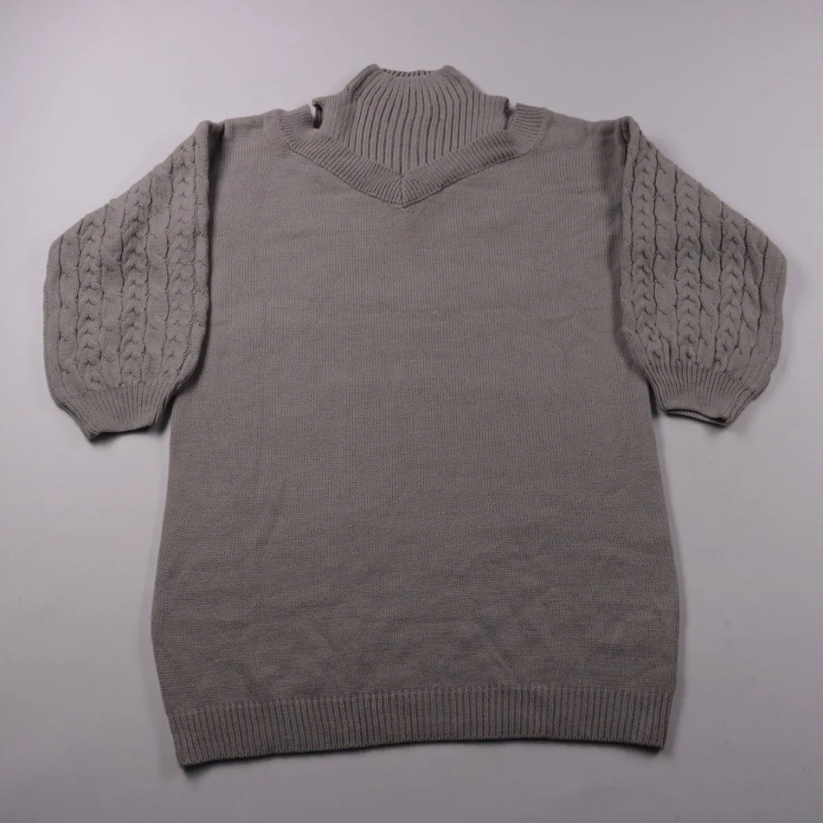 Свитер Shein Curve серого цвета с высоким воротником и акцентными рукавами с косами. Подойдёт для повседневных образов в прохладную погоду, хорошо смотрится с джинсами и юбками. Практичный плюс — мягкий акрил, который легко стирается и быстро сохнет.