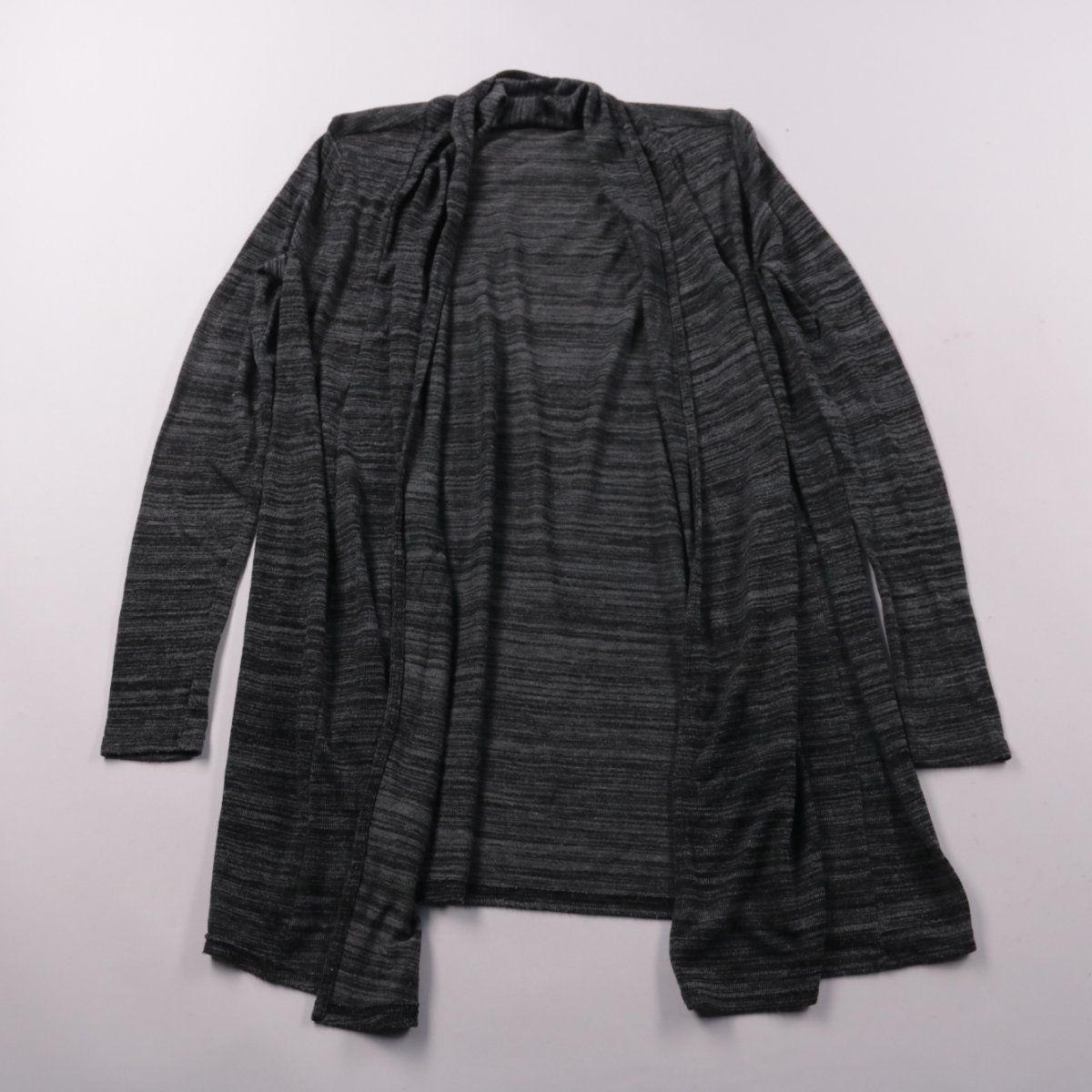 Женский трикотажный кардиган EDC серого меланжевого цвета, удлинённый и без застёжки. Подойдёт для офиса и повседневных образов, удобно носить поверх топа или водолазки в прохладную погоду. Лёгкий материал хорошо драпируется и не сковывает движения.