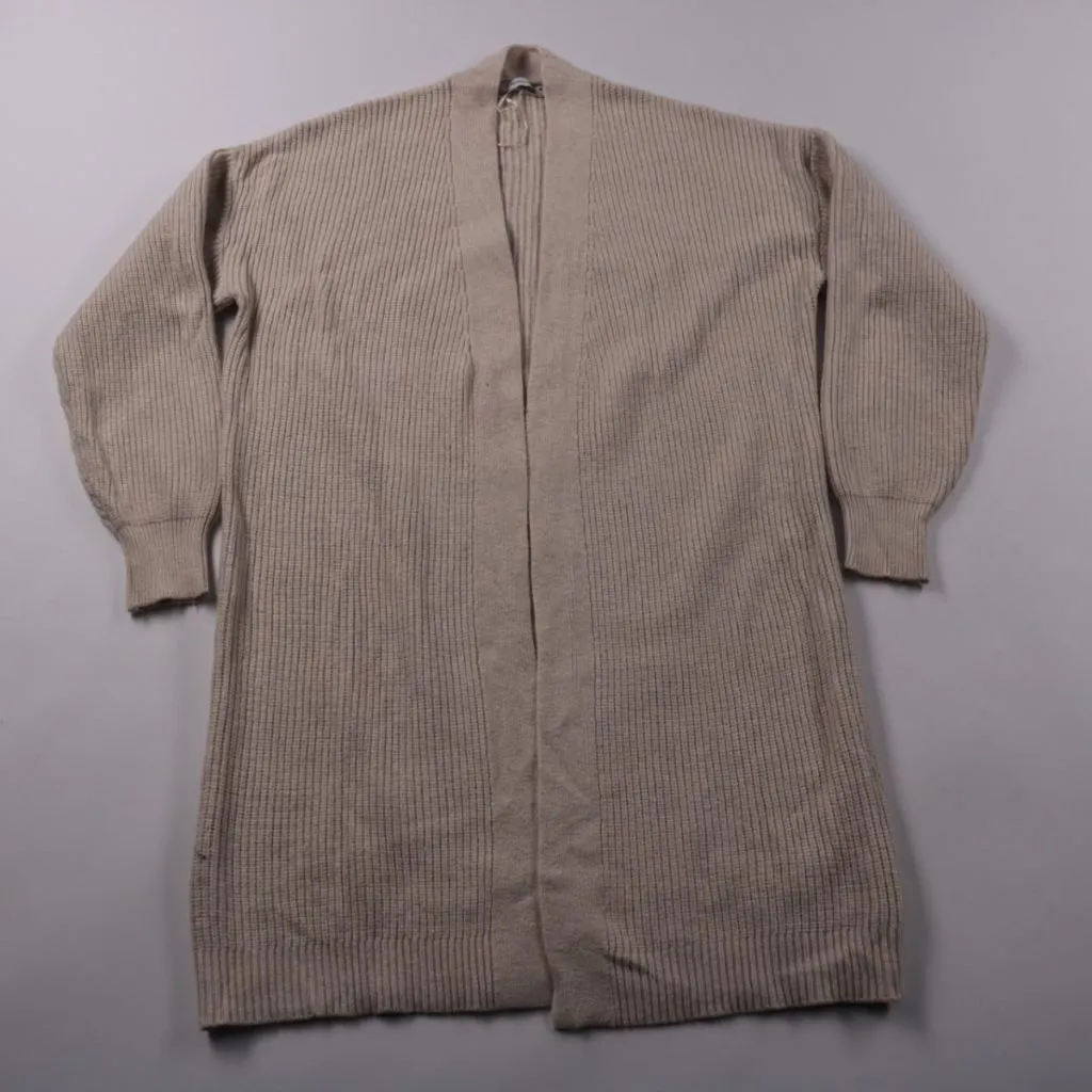 Удлинённый вязаный кардиган Reserved в рубчик, без застёжки, бежевого цвета. Подойдёт для повседневных образов и офиса в прохладную погоду как лёгкий верхний слой. Практичен тем, что легко сочетается с базовыми вещами и не стесняет движений.