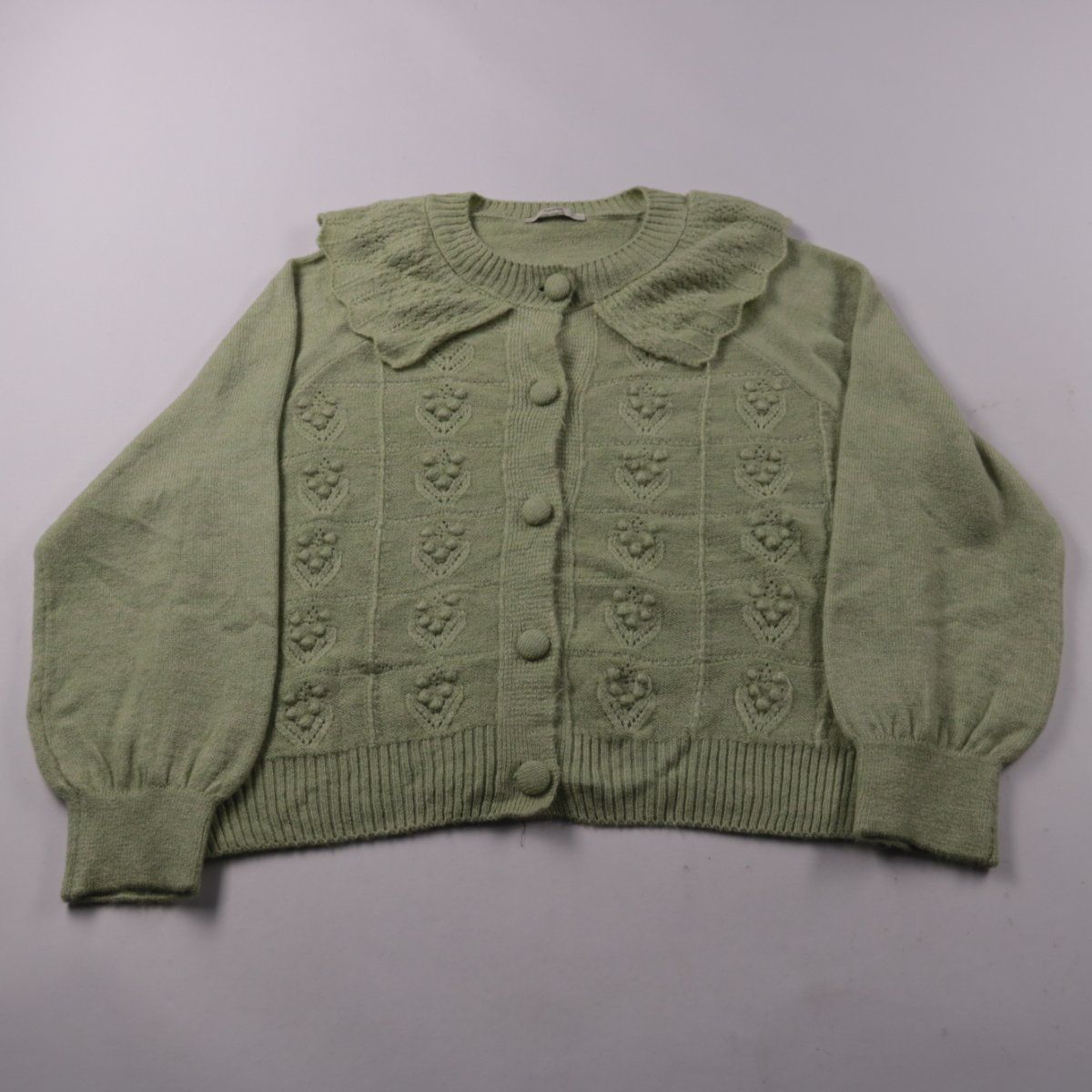 Вязаный кардиган George светло-зелёного цвета с застёжкой на пуговицы и акцентным рюшем-воротником. Подойдёт для прохладной погоды и многослойных образов на каждый день. Практичен тем, что легко комбинируется с базовыми топами и платьями.
