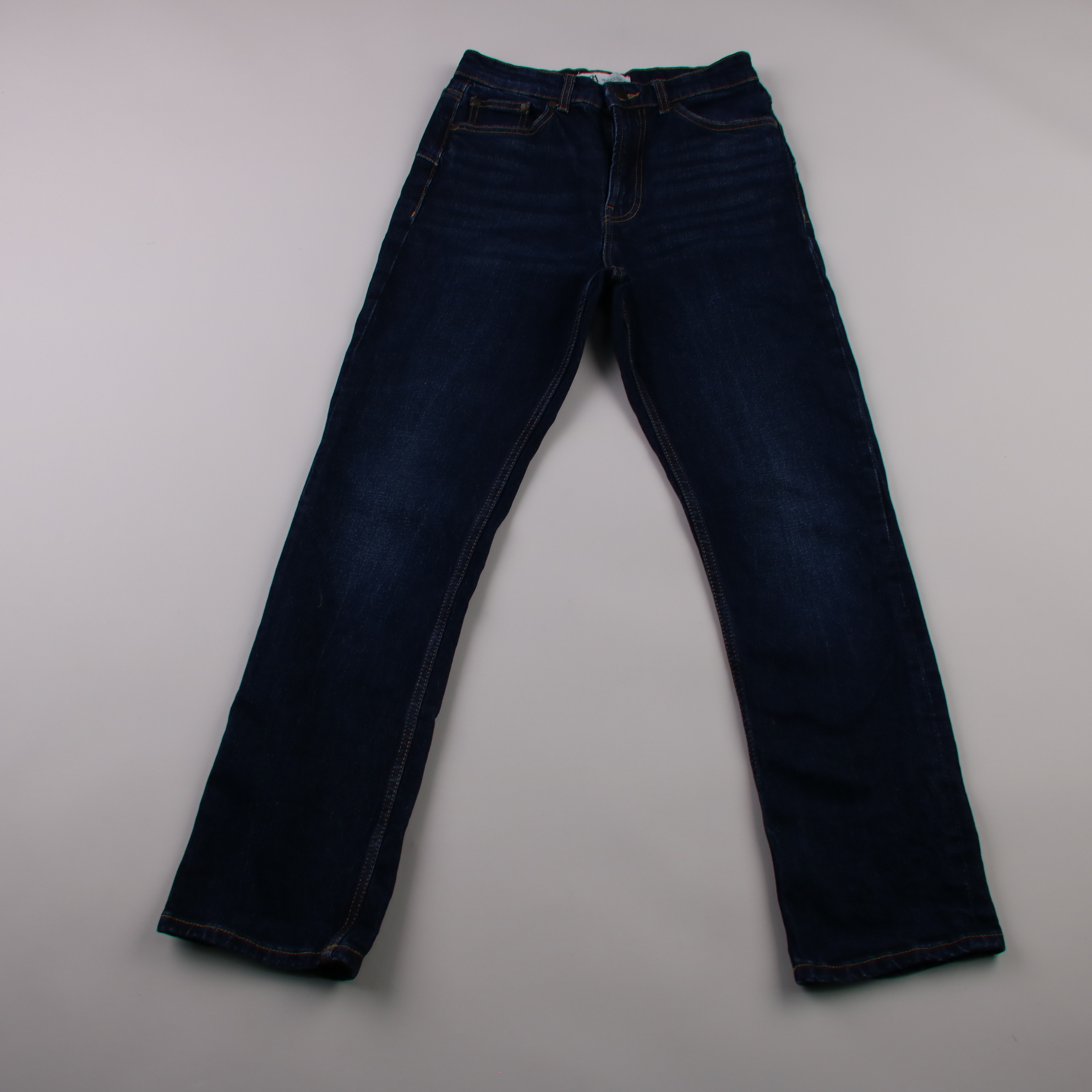 Женские джинсы Zara из тёмно-синего денима с классической посадкой и прямыми штанинами. Подойдут для повседневных образов с кедами, ботинками или лоферами. Плотная ткань хорошо держит форму и легко сочетается с базовым гардеробом.