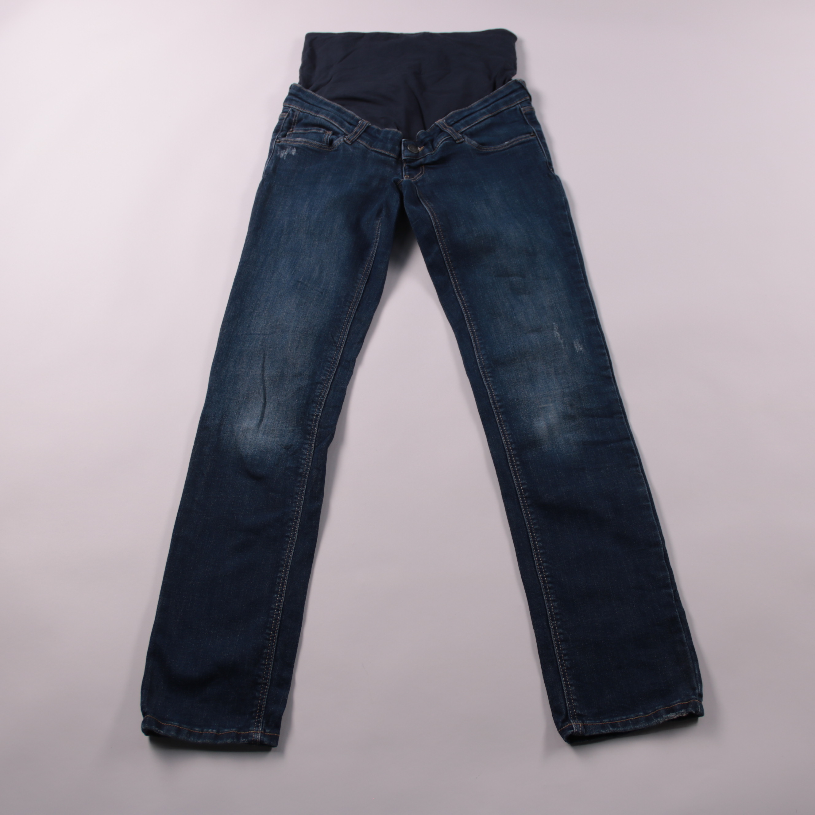 Женские джинсы C&A Mama модели slim, тёмно-синего цвета, с эластичным поясом для комфортной посадки. Подойдут на каждый день, для прогулок и офиса в стиле casual. Ткань тянется и не сковывает движения благодаря добавлению эластана.