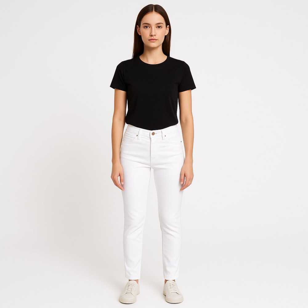 Женские белые джинсы Miss Anna с высокой посадкой и зауженным к низу кроем. Подойдут для повседневных образов в городе и на работу с базовыми футболками, рубашками или жакетом. Плотный хлопковый деним с добавлением эластана лучше держит форму и комфорт...
