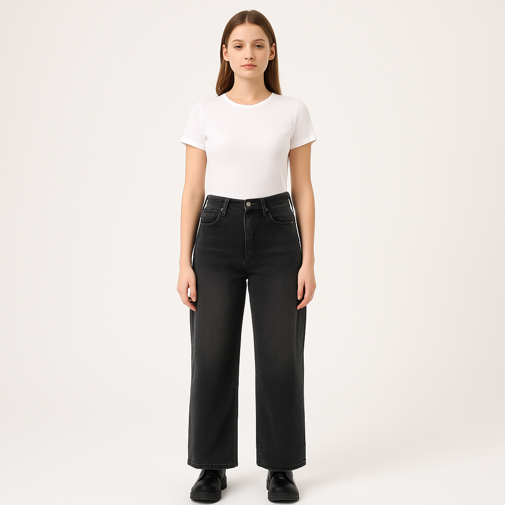 Женские джинсы George Fashion Fit чёрного цвета, посадка высокая и прямой крой. Подойдут на каждый день и в офисный casual, легко сочетаются с базовыми футболками, рубашками и жакетами. Практичный плотный 100% хлопок хорошо держит форму и комфортен в н...