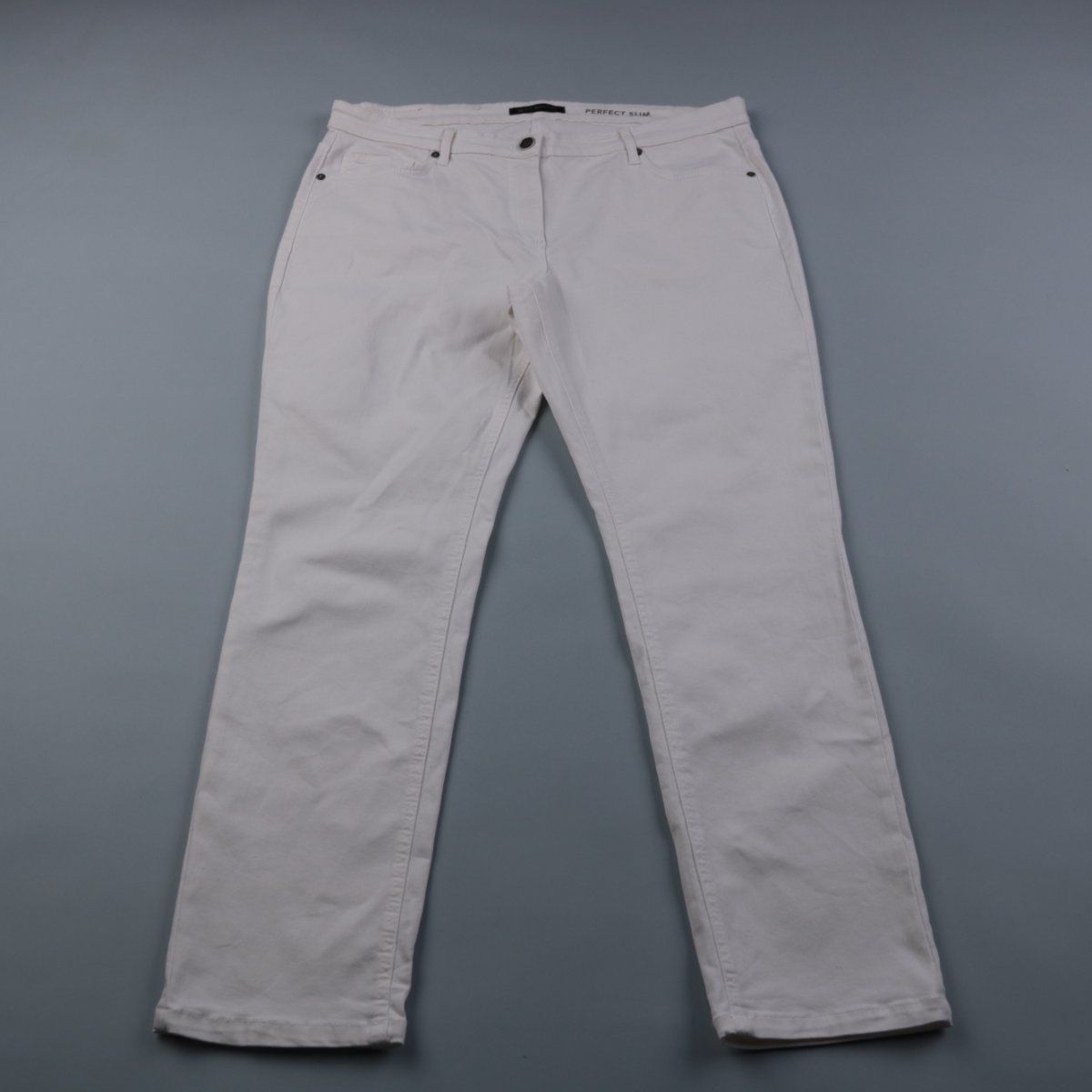 Женские белые джинсы Betty Barclay прямого кроя с классической посадкой и пятью карманами. Подойдут для повседневных образов в городе и на работу в сочетании с рубашками, футболками и жакетами. Практичный светлый цвет легко комбинируется с любыми оттенками.