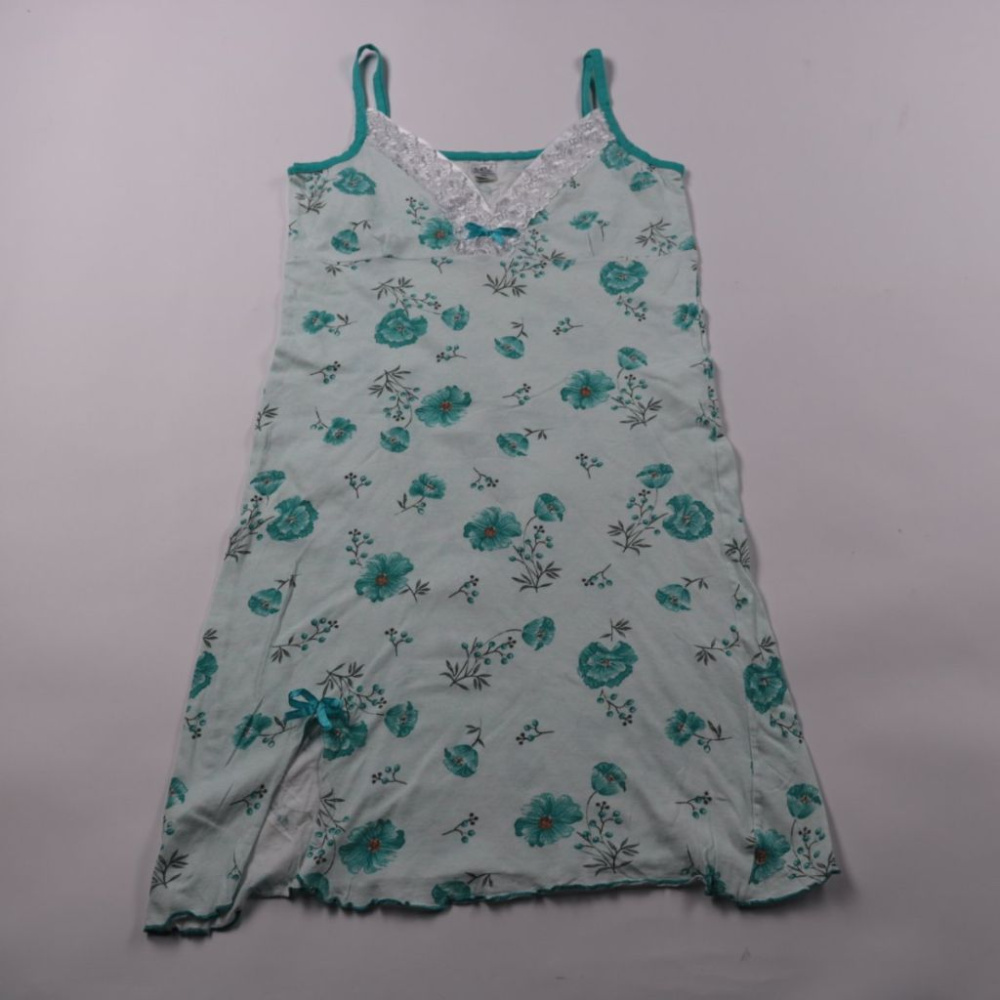 Женская ночная сорочка N.O.A на тонких бретелях, светло-бирюзовая с цветочным принтом и кружевом по линии декольте. Подойдёт для сна и дома в тёплое время или как базовый домашний слой круглый год. Натуральный хлопок приятен к телу и хорошо пропускает ...