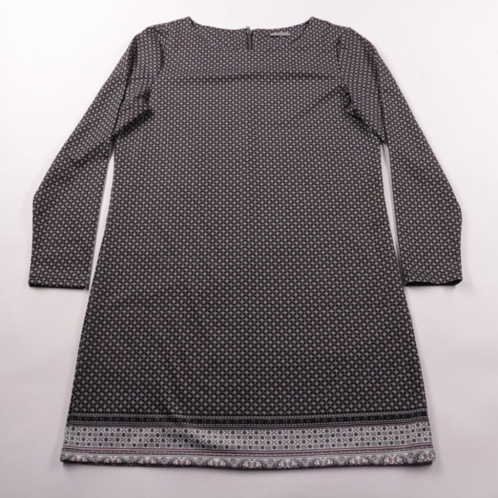Повседневное платье прямого кроя с длинным рукавом и мелким геометрическим принтом, по низу — декоративная кайма. Подойдёт для офиса и на каждый день, хорошо сочетается с ботильонами или кедами и плотными колготками. Практично тем, что немаркое и почти...
