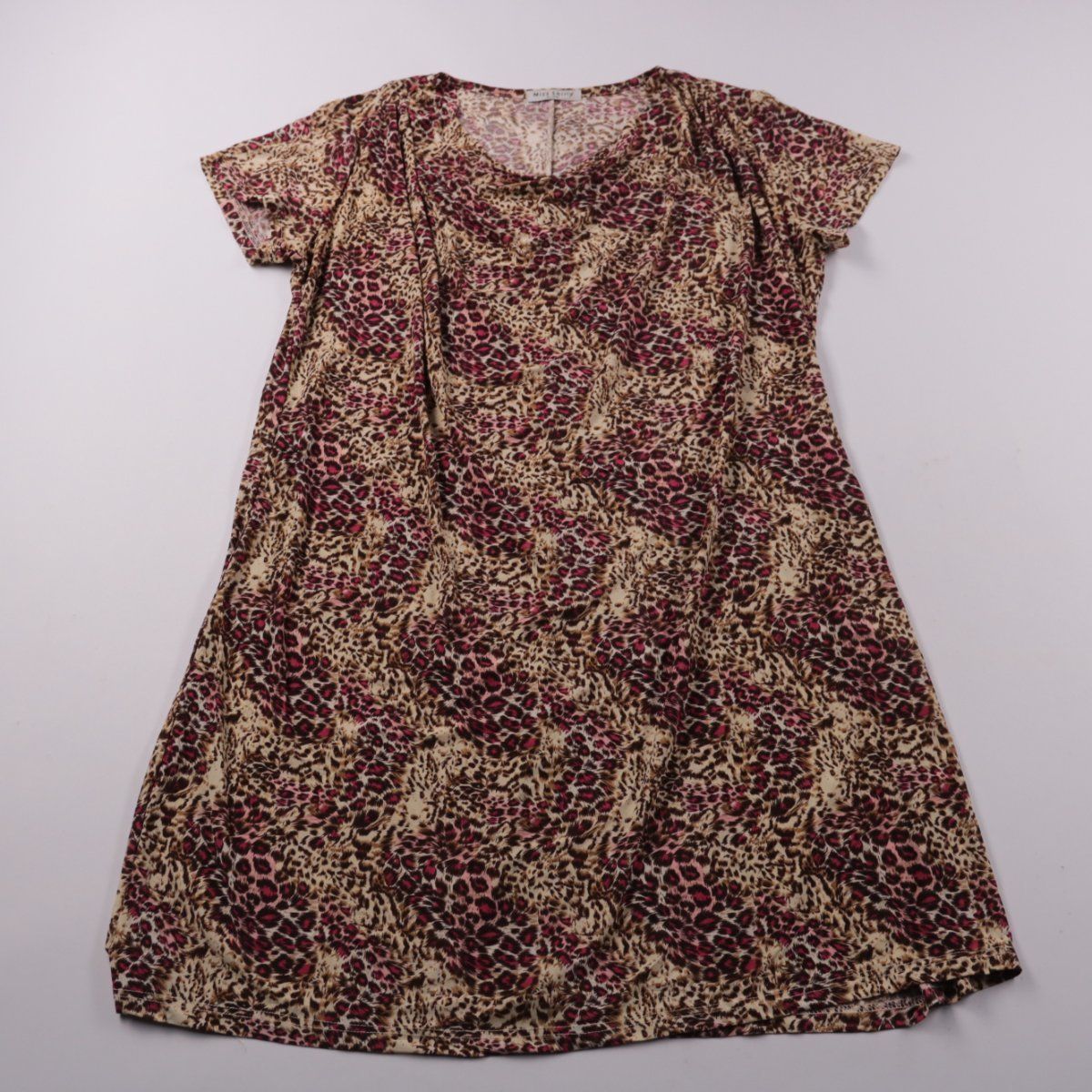 Повседневное платье Miss Shilly с коротким рукавом и леопардовым принтом. Подойдёт для тёплой погоды и на каждый день, ткань мягкая и тянется за счёт эластана. Практично тем, что не сковывает движения и легко сочетается с однотонной обувью и аксессуарами.