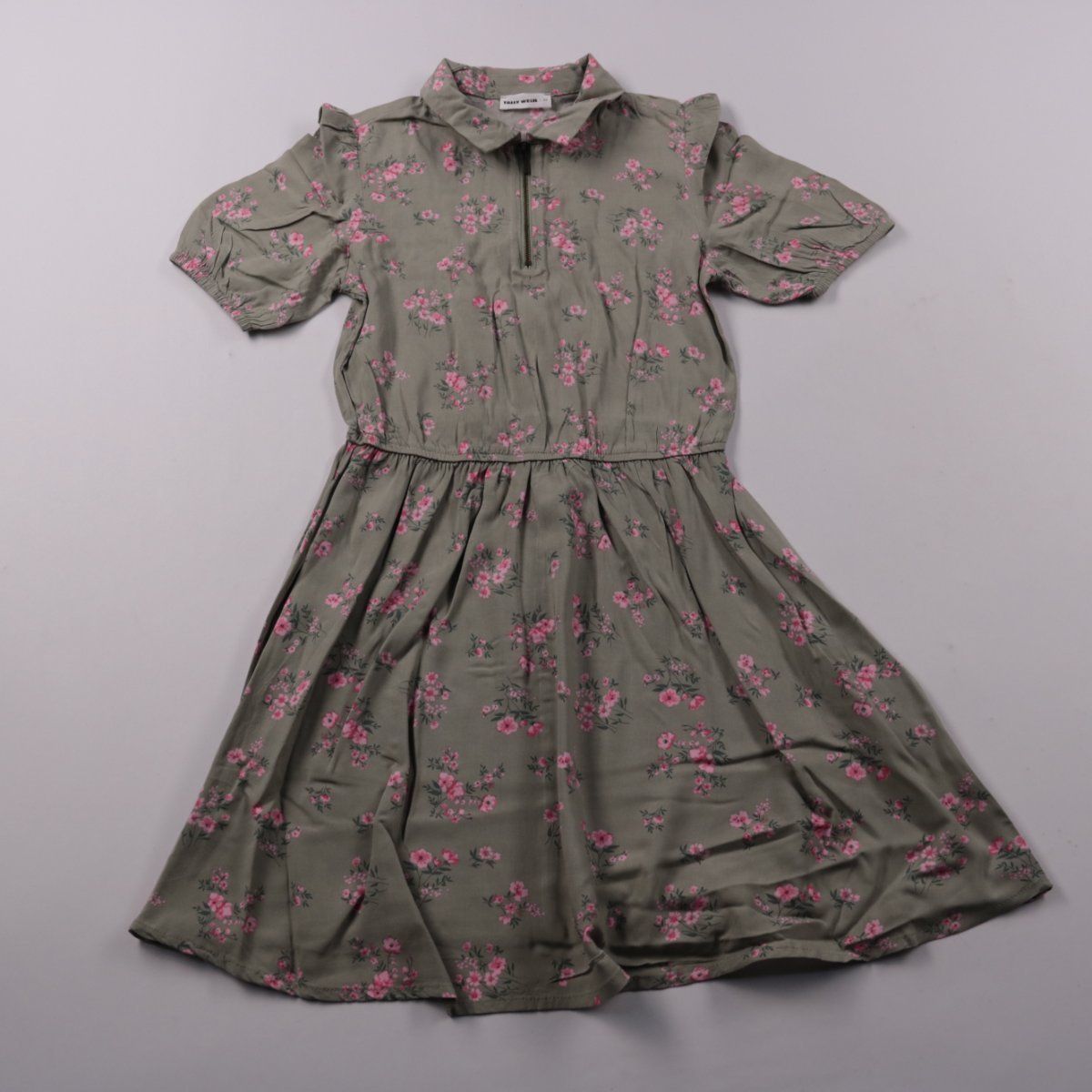 Лёгкое повседневное платье Tally Weijl с цветочным принтом и воротником-поло, рукава с небольшими воланами. Подойдёт для тёплых дней, прогулок и городских образов с кедами или босоножками. Практичная застёжка-молния спереди помогает удобно регулировать вырез.