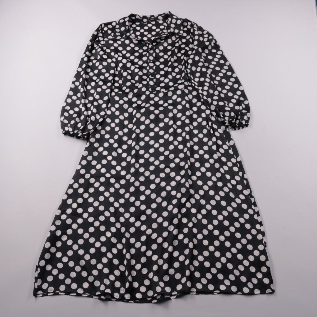 Повседневное платье George чёрного цвета в белый горох, с отложным воротником и рукавом 3/4. Подойдёт на каждый день, для офиса с нестрогим дресс-кодом или прогулок в прохладную погоду. Ткань из полиэстера почти не мнётся и проста в уходе.