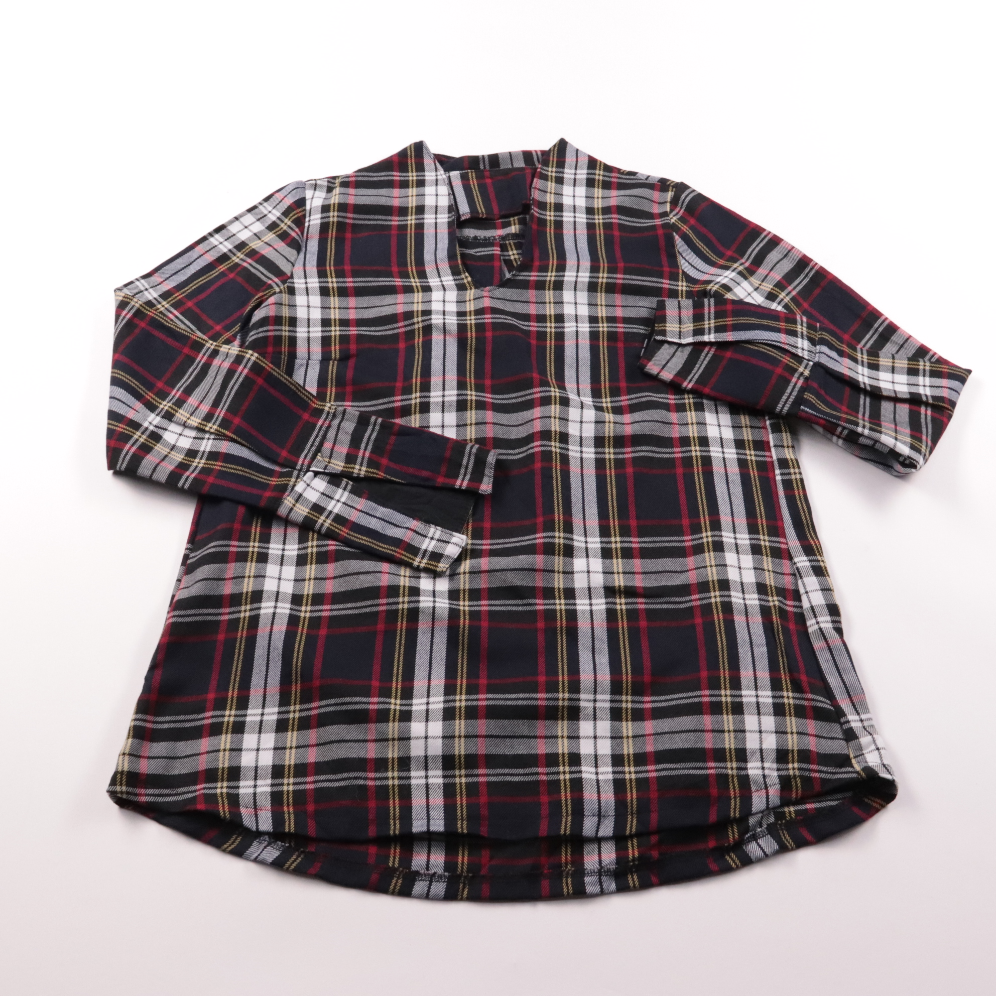 Женская блузка в клетку с длинным рукавом и воротником-стойкой, без пуговиц спереди. Подойдёт для повседневных образов с джинсами или юбкой в прохладную погоду. Плотная ткань хорошо держит форму и удобна в носке.