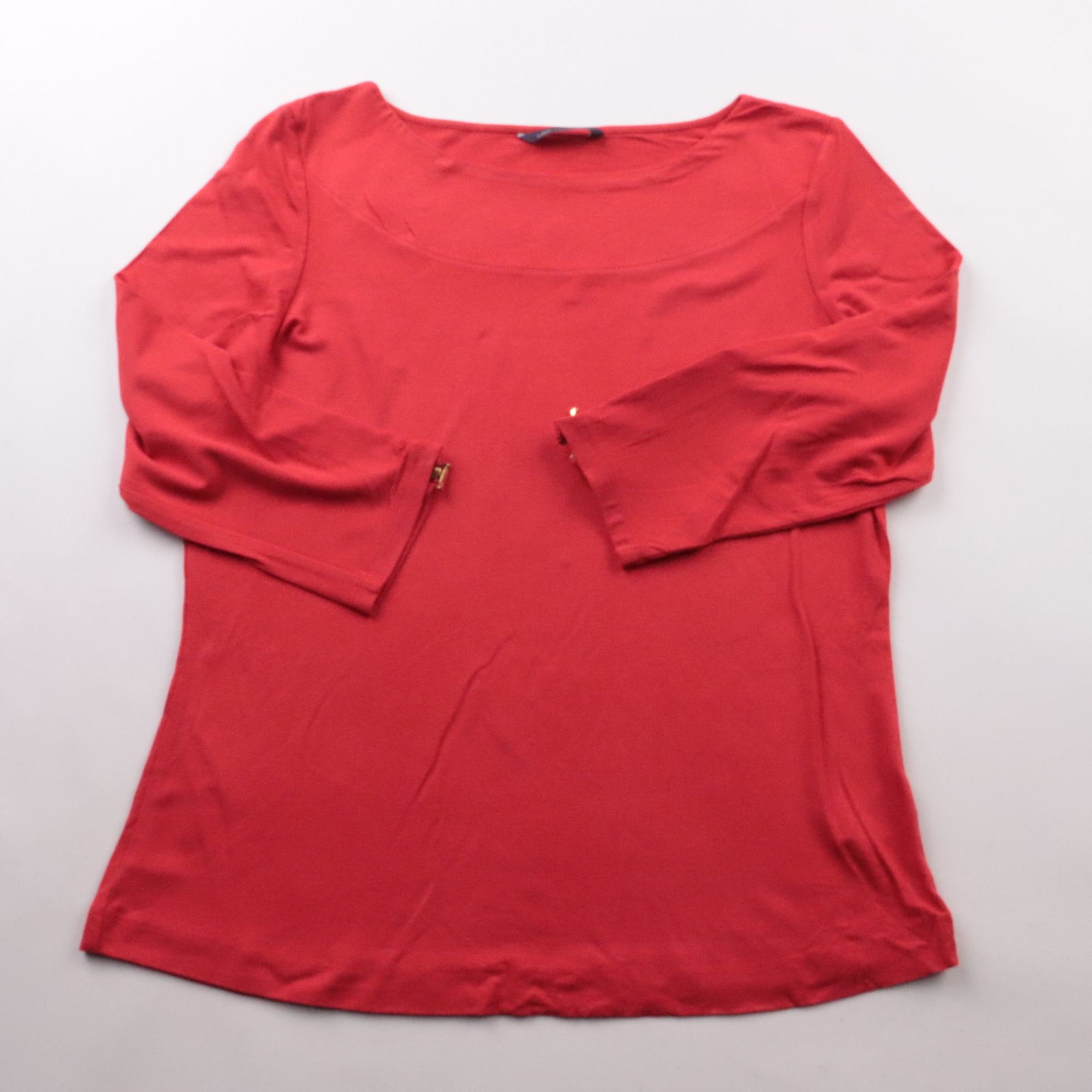 Блузка M&S Collection красного цвета с длинным рукавом и аккуратным вырезом лодочкой, на манжетах есть декоративные молнии. Подойдёт для офиса и на каждый день, легко сочетается с брюками и юбками. Ткань мягкая и эластичная, комфортно сидит и не сковыв...