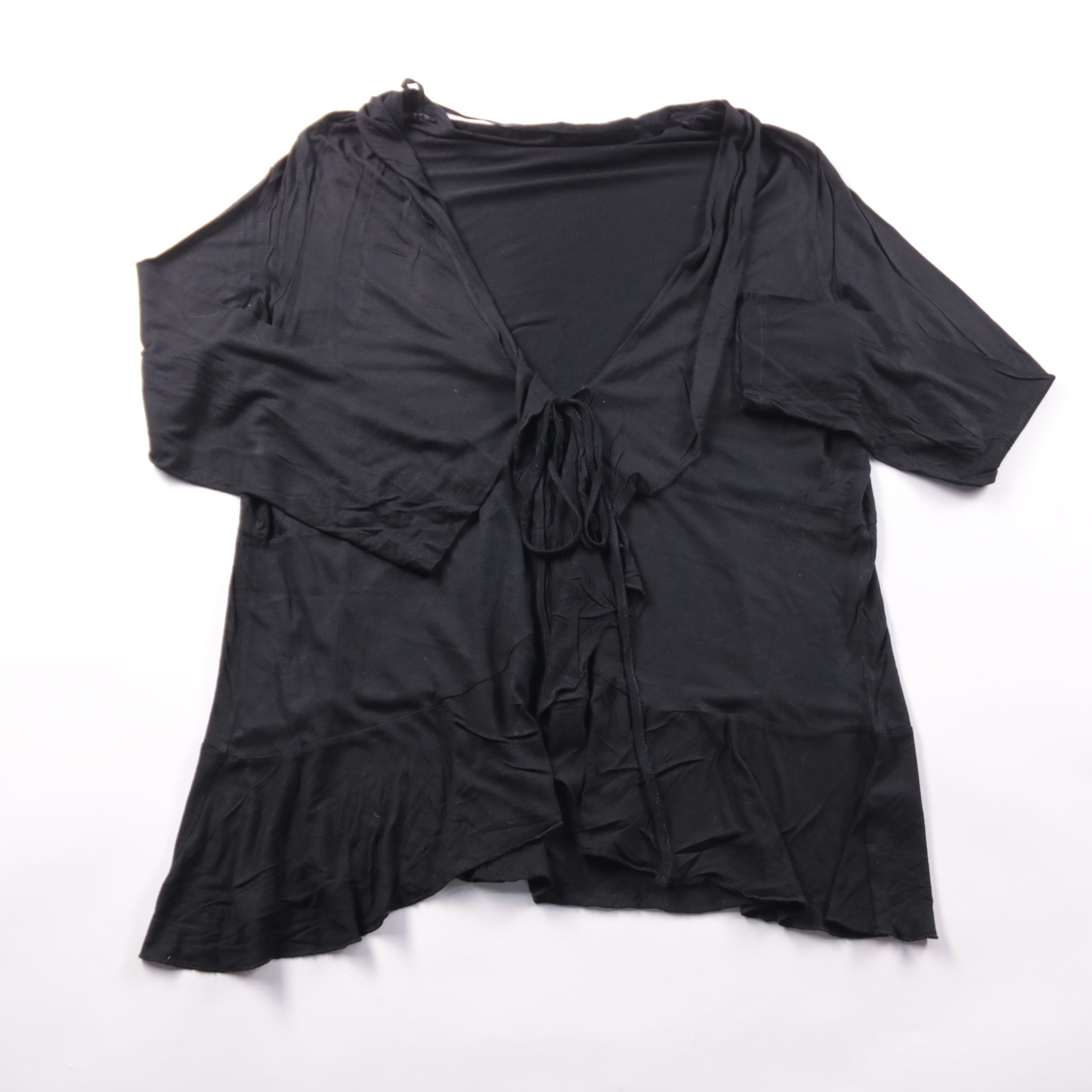 Женская блузка Lindex чёрного цвета из мягкой вискозы, с V-образным вырезом и завязками спереди. Подойдёт для повседневных образов и офиса, хорошо сочетается с джинсами и юбками. Лёгкий материал комфортно носится и красиво драпируется.