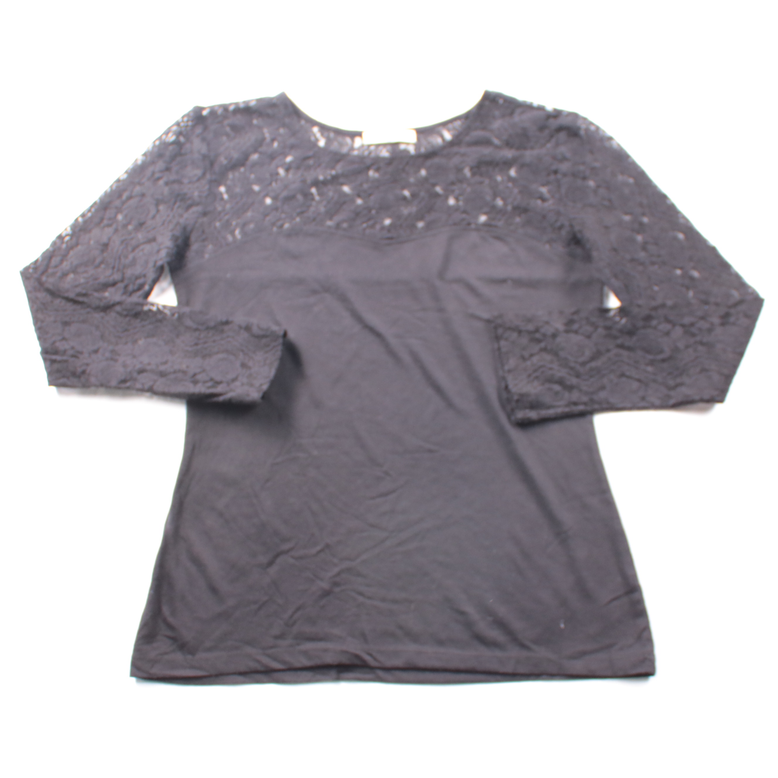 Чёрная блузка Inside с кружевным верхом и длинными рукавами. Подойдёт для вечерних выходов и аккуратных образов в офис с топом или бра под низ. Кружево добавляет фактуры, при этом ткань внизу комфортно носится и легко сочетается с брюками и юбками.