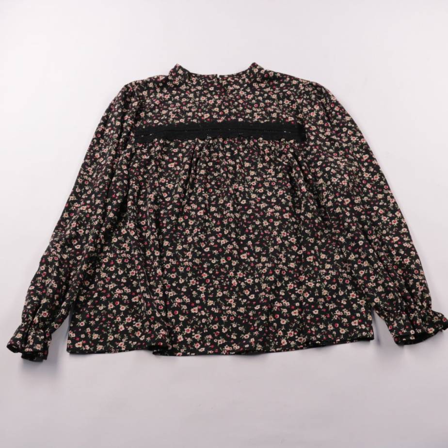 Женская блузка Shein Curve с мелким цветочным принтом на чёрном фоне и декоративной вставкой спереди. Подойдёт для повседневных образов и офиса в сочетании с брюками или юбкой. Практичный плюс — лёгкая ткань почти не мнётся и благодаря эластану немного...