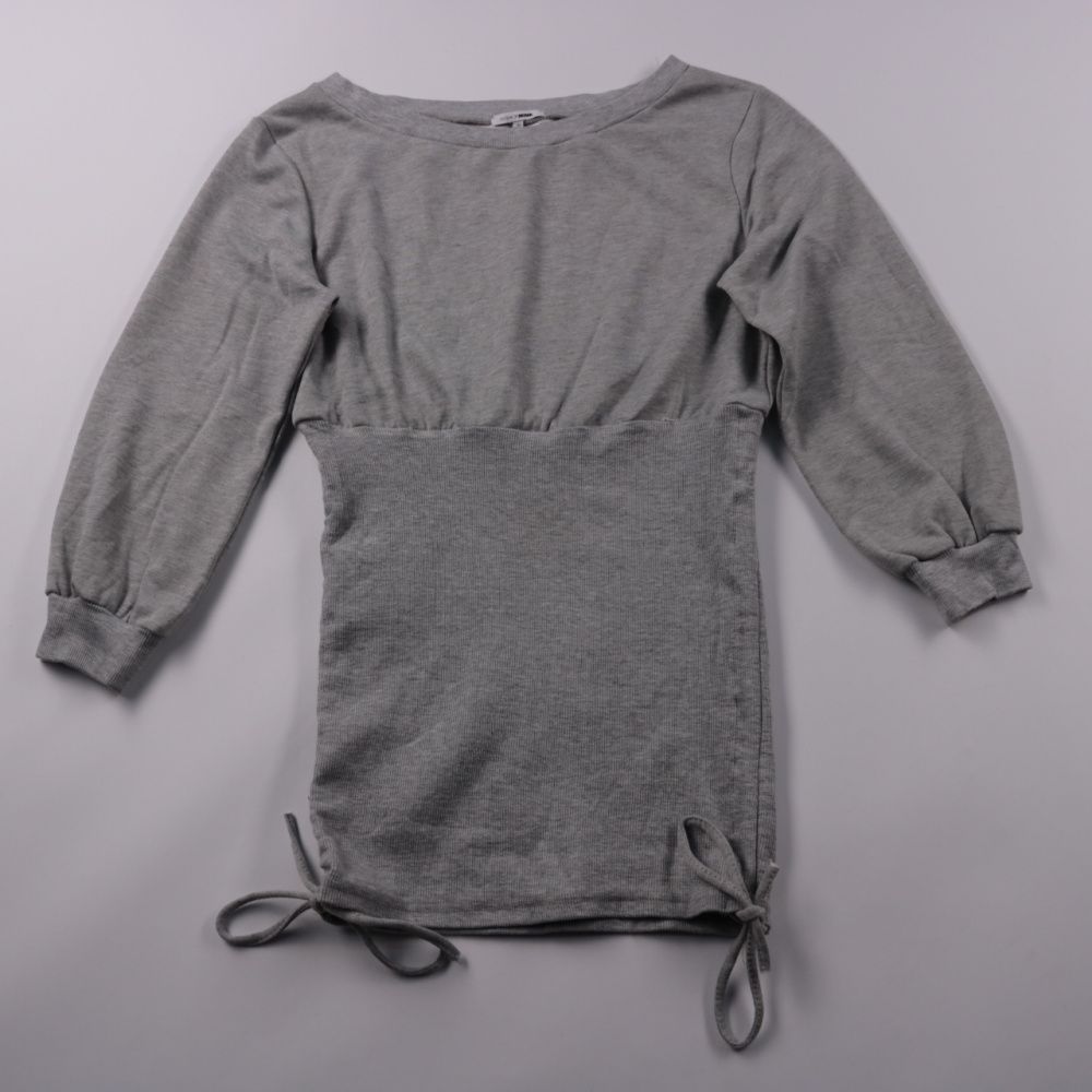 Женская блузка Fashion Nova серого цвета, размер M, с длинными рукавами и эластичной вставкой по талии. Модель с завязками по низу хорошо подходит для повседневных образов и прогулок. Практичный плюс — полиэстер почти не мнётся и быстро сохнет.