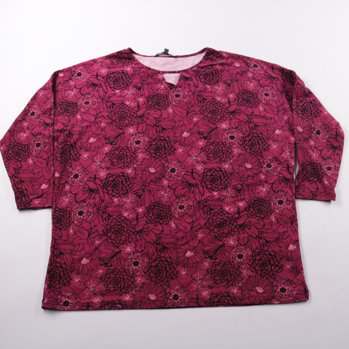 Блузка Bonmarché с цветочным принтом в бордово-розовой гамме и небольшим вырезом у горловины. Подойдёт для повседневных образов и офиса с однотонными брюками или юбкой. Ткань с эластаном тянется и комфортно садится по фигуре.