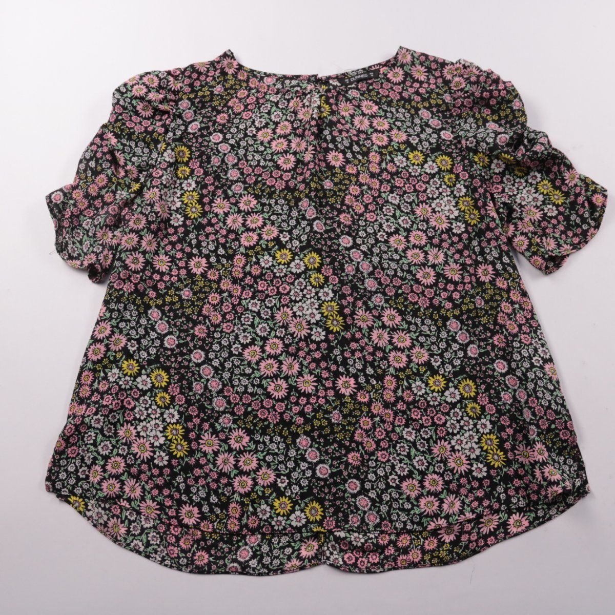 Женская блузка St. Bernard (for Dunnes Stores) с цветочным принтом на чёрном фоне и округлым вырезом. Подойдёт для повседневных летних образов и офиса без строгого дресс-кода. Материал 100% полиэстер — лёгкая ткань, простая в уходе и быстро сохнет.
