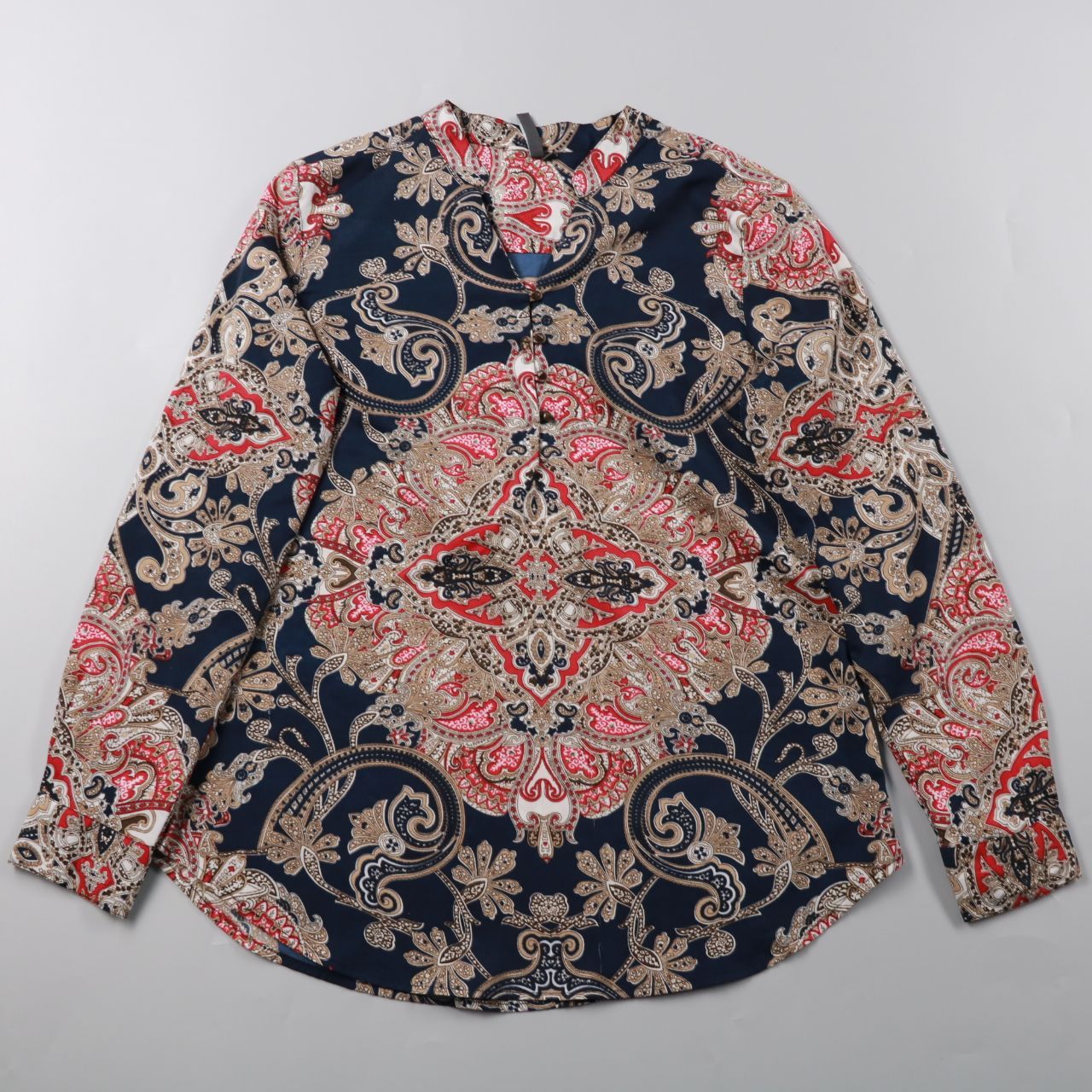 Блузка A.O.T с длинным рукавом и V-образным вырезом на пуговицах, выполнена в орнаментальном принте пейсли. Подойдёт для повседневных образов и в офис с однотонными брюками или юбкой. Практичный плюс — лёгкая ткань и выразительный рисунок, который не т...