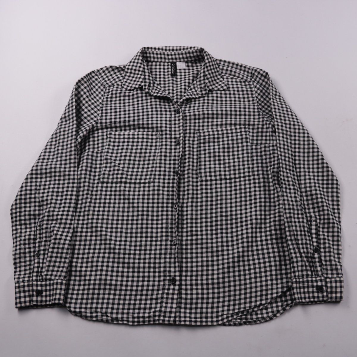 Женская рубашка H&M Divided в мелкую чёрно-белую клетку, с длинным рукавом и нагрудными карманами. Подойдёт для повседневных образов и офисного casual, можно носить как самостоятельно, так и вторым слоем. Хлопковая ткань приятна к телу и проста в уходе.