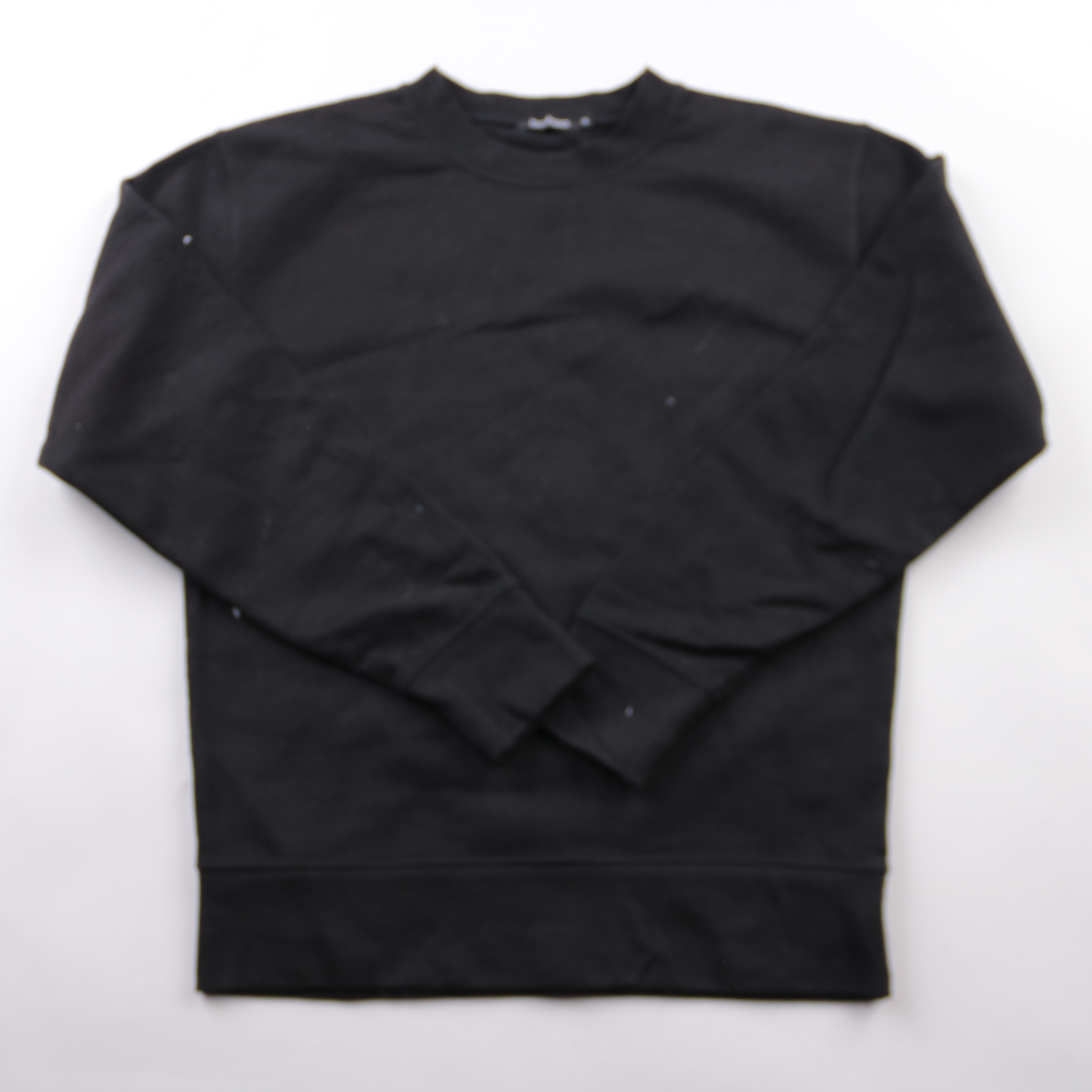 Чёрный свитшот Boohoo без принта, с круглым вырезом и манжетами. Подойдёт для повседневных образов и прогулок в прохладную погоду. Мягкая изнанка делает его удобным для носки каждый день.