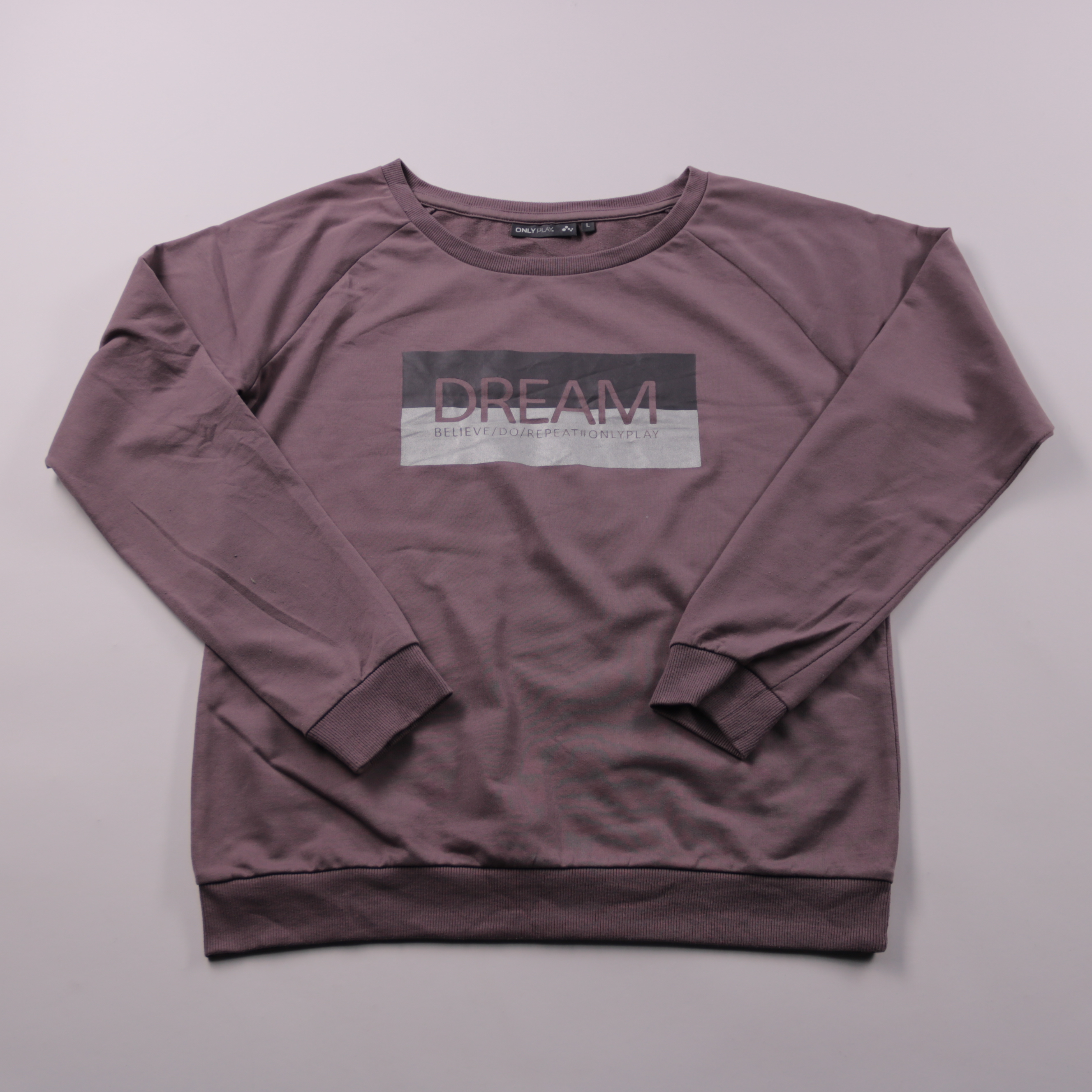 Свитшот Only Play в приглушённом фиолетовом оттенке с принтом DREAM спереди. Подойдёт для повседневной носки и прогулок в прохладную погоду, хорошо сочетается с джинсами или спортивными брюками. Практичен в уходе благодаря смесовой ткани и удобным манж...