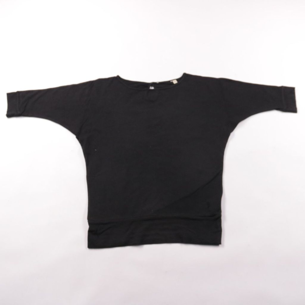 Чёрный свитшот свободного кроя с рукавом «летучая мышь», мягкий и удобный для повседневных образов. Подойдёт на прохладную погоду и для дома, хорошо сочетается с джинсами и спортивными брюками. Благодаря хлопку с добавлением эластана ткань тянется и ко...
