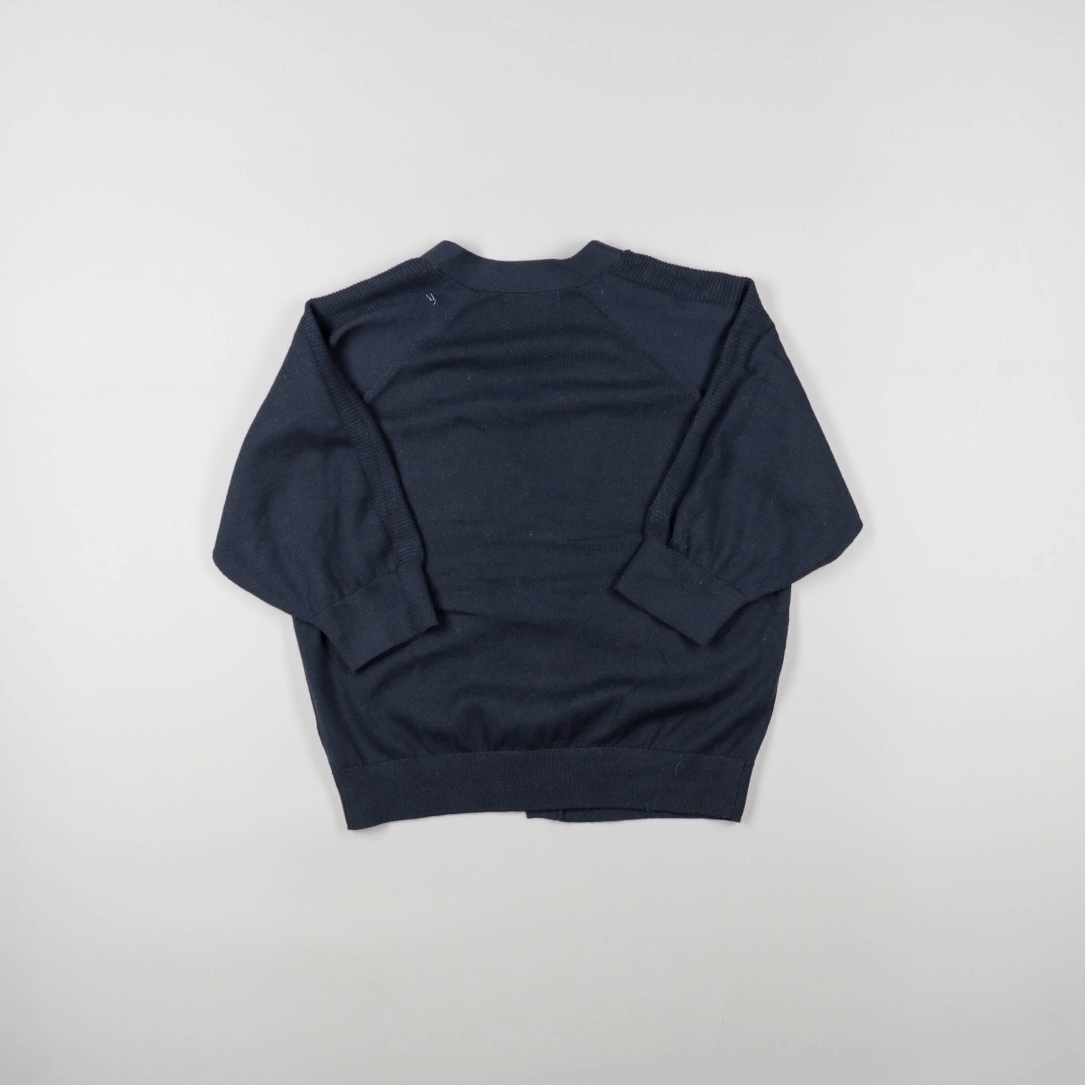 Темно-синий свитшот без бренда с классическим круглым вырезом и манжетами. Подойдет для повседневных образов и как второй слой в прохладную погоду. Практичен в носке: легко сочетать с джинсами и спортивными брюками.