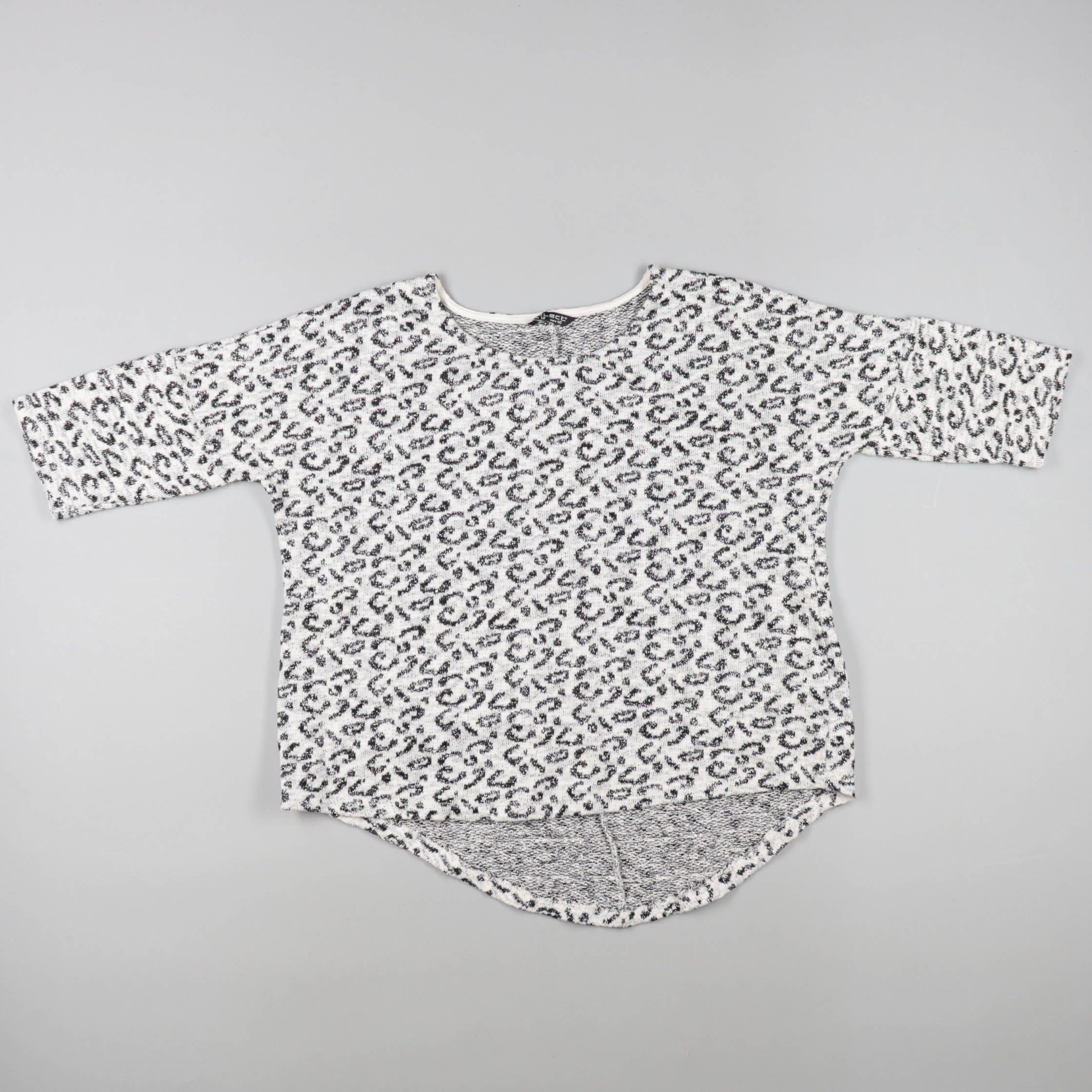 Женский лонгслив свободного кроя с леопардовым принтом в бело-чёрной гамме. Подойдёт для повседневных образов и дома, хорошо сочетается с джинсами и леггинсами. Мягкий трикотаж приятен к телу и не сковывает движения.