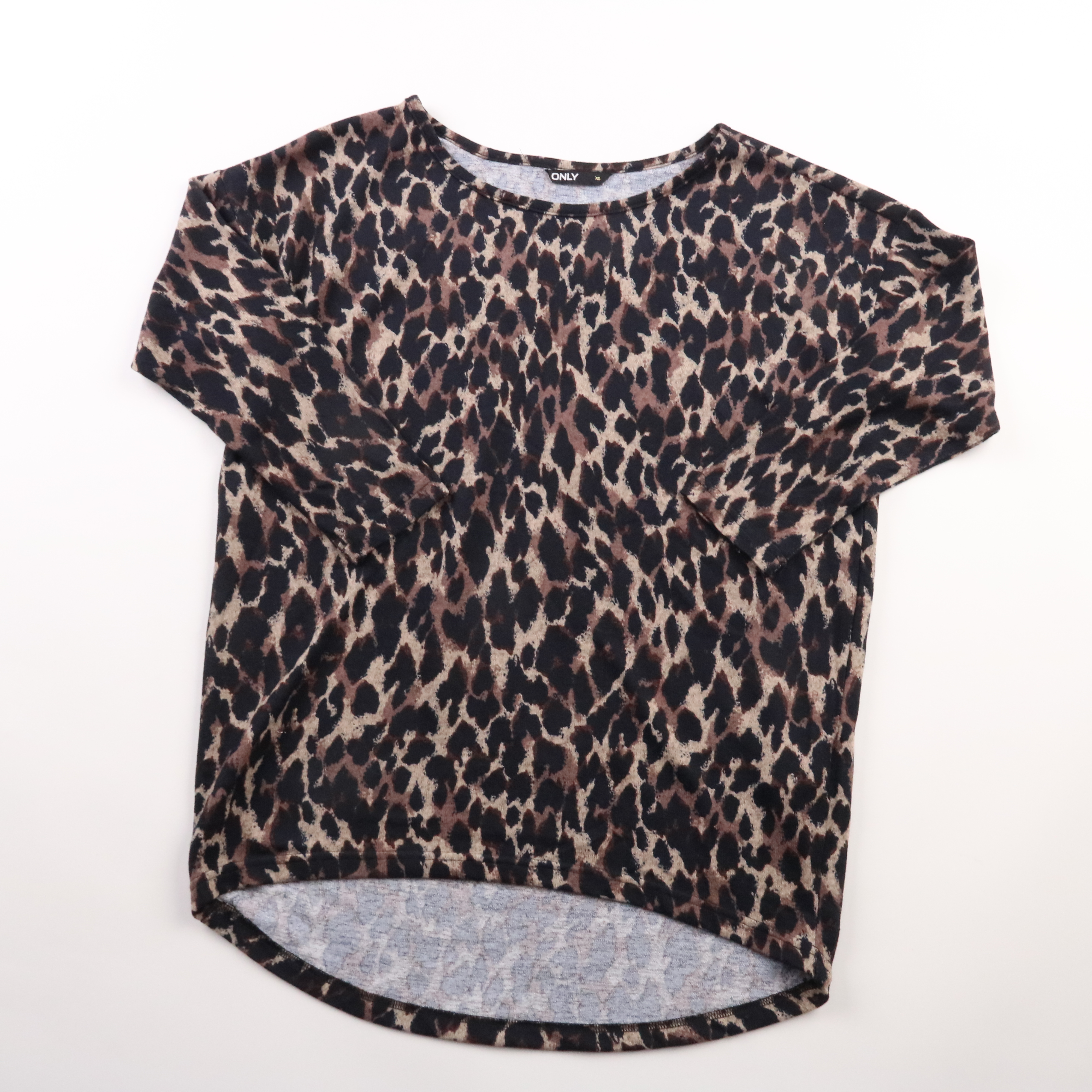 Футболка Only с леопардовым принтом и коротким рукавом, спинка чуть длиннее переда. Подойдёт для повседневных образов с джинсами, юбкой или шортами в тёплый сезон и под жакет в межсезонье. Практичный трикотаж комфортно носится и не сковывает движения.