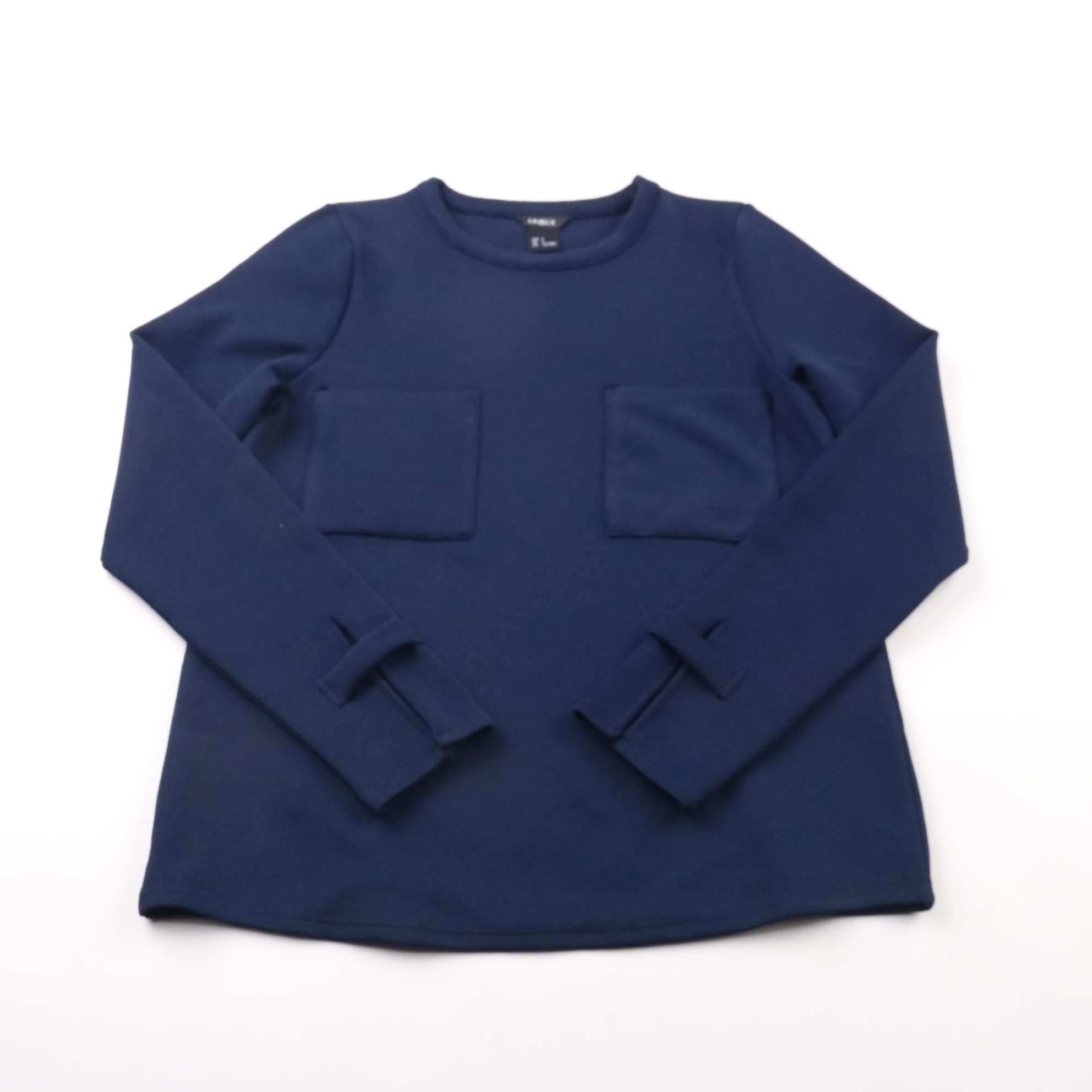 Женский лонгслив Lindex тёмно-синего цвета из плотного эластичного трикотажа, с двумя накладными карманами спереди. Подойдёт для повседневных образов и офиса в стиле casual, хорошо сочетается с джинсами и брюками. Материал тянется и держит форму, поэто...