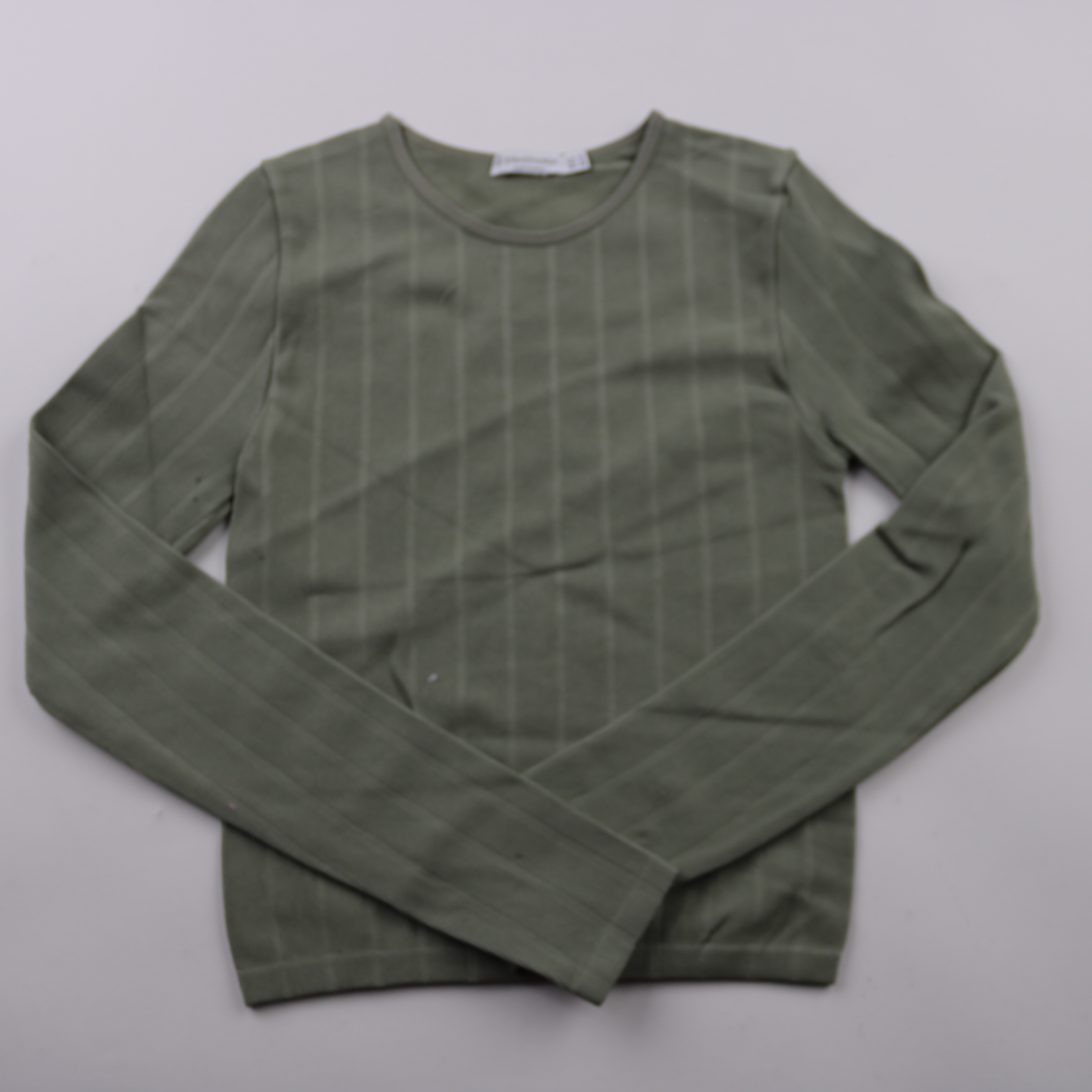 Лонгслив Stradivarius оливково-зелёного цвета в тонкую полоску, с круглым вырезом и длинным рукавом. Подойдёт для повседневных образов в офис и на прогулки, легко сочетается с джинсами и брюками. Мягкий трикотаж приятен к телу и комфортен при носке.