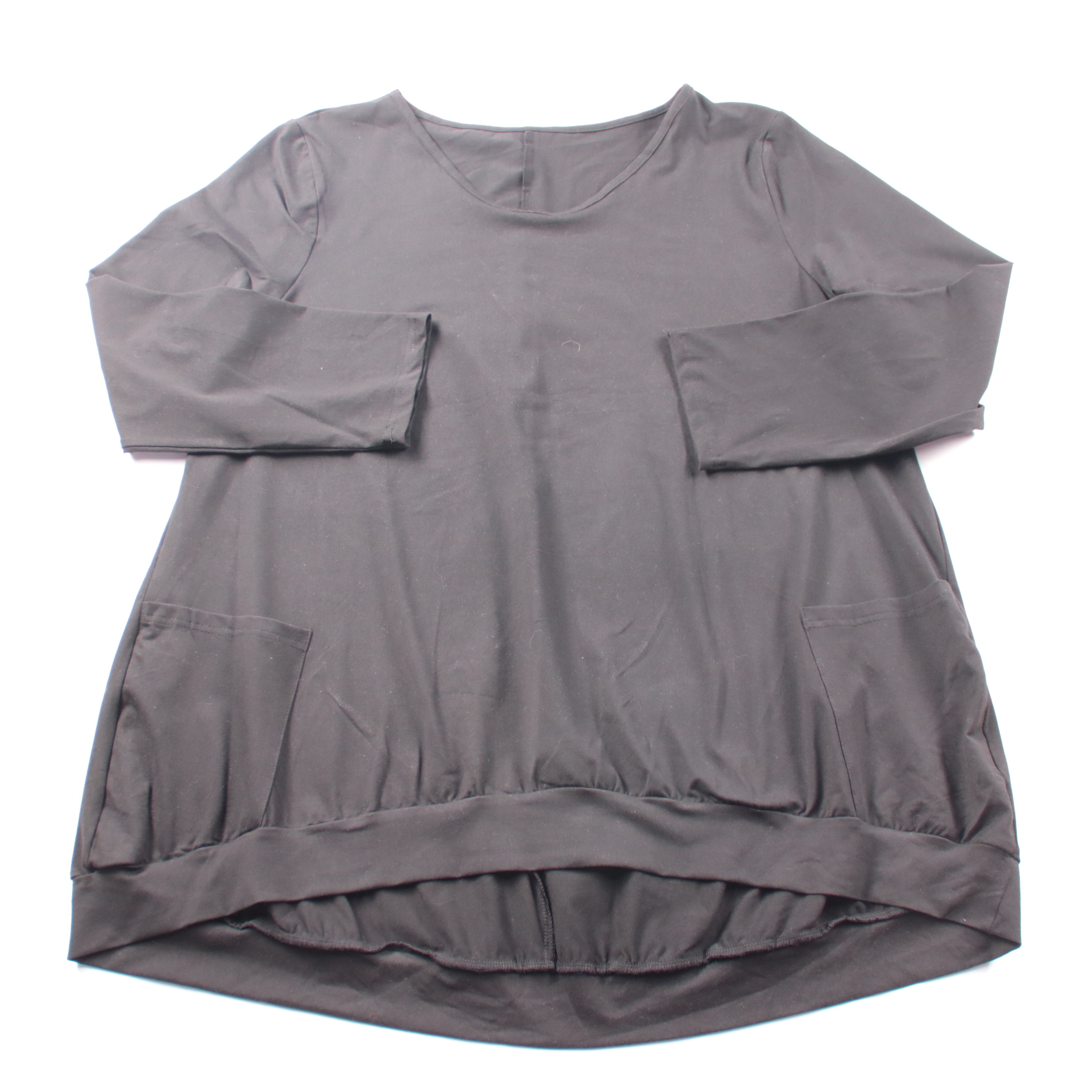 Женский лонгслив свободного кроя без бренда, с округлым вырезом и накладными карманами спереди. Подойдёт для повседневных образов и домашней носки, хорошо сочетается с джинсами и леггинсами. Практичный плюс — эластичная ткань тянется и не сковывает дви...