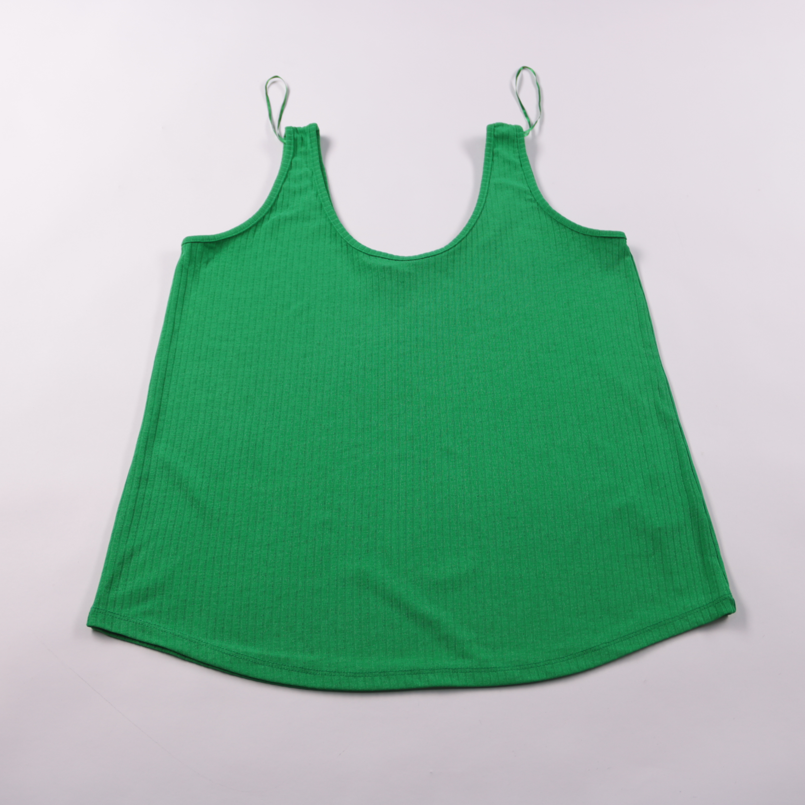 Женский топ Dunnes Stores ярко‑зелёного цвета из мягкого трикотажа в рубчик на тонких бретелях. Подойдёт для лета и отдыха, легко комбинируется с джинсами, шортами или юбкой. Практичен тем, что материал хорошо тянется и не требует сложного ухода.