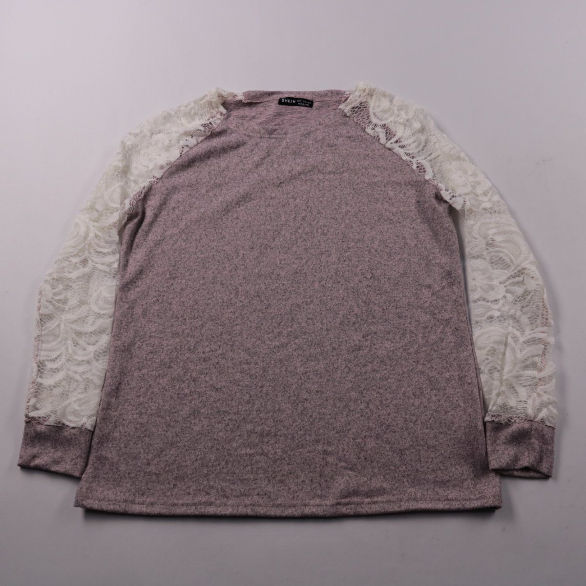 Женский лонгслив SHEIN из мягкого трикотажа с контрастными кружевными рукавами-реглан. Подойдёт для повседневных образов и на выход, когда хочется добавить немного фактуры. Ткань тянется и комфортно садится по фигуре.