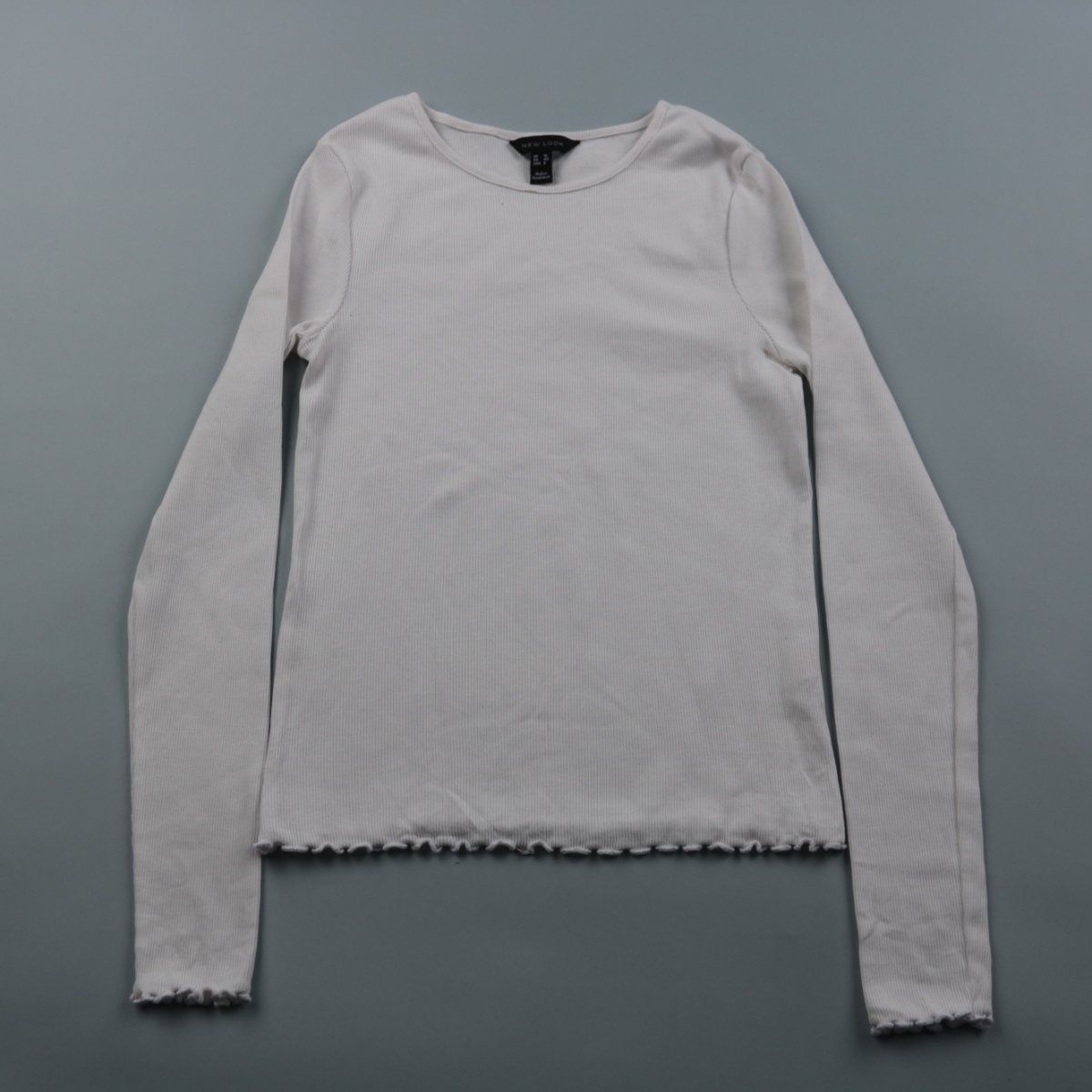 Женский лонгслив New Look белого цвета из фактурного трикотажа в рубчик, с круглым вырезом и длинным рукавом. Подойдёт для повседневных образов и как базовый слой под жакет или кардиган. Эластичная ткань хорошо тянется и комфортно садится по фигуре.