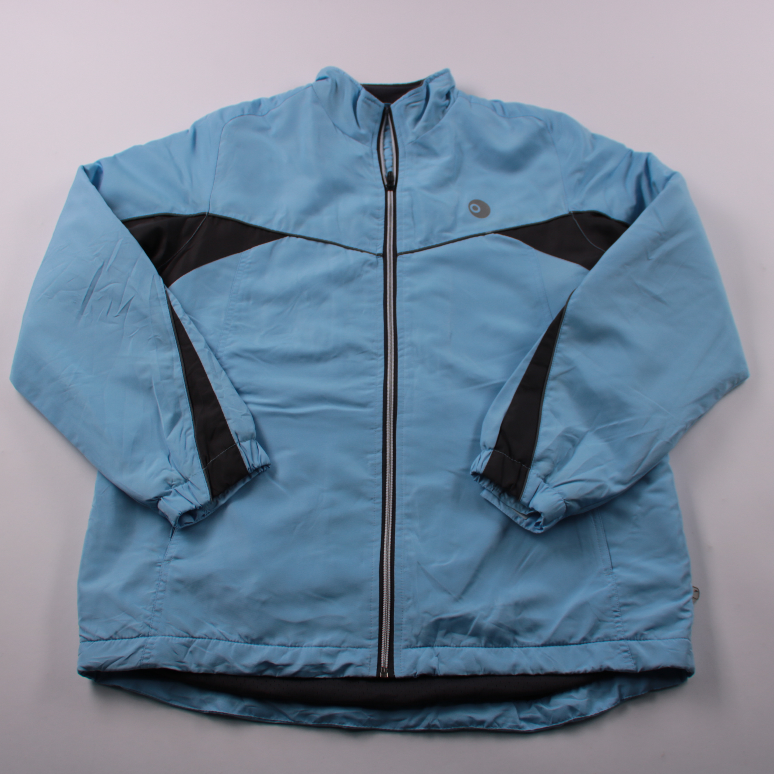 Женская спортивная куртка Crane в голубом цвете с чёрными вставками и застёжкой на молнию. Подойдёт для прогулок и активного отдыха в прохладную погоду, внутри сетчатая/флисовая часть для комфорта. Лёгкая и быстро сохнет, удобно брать с собой.